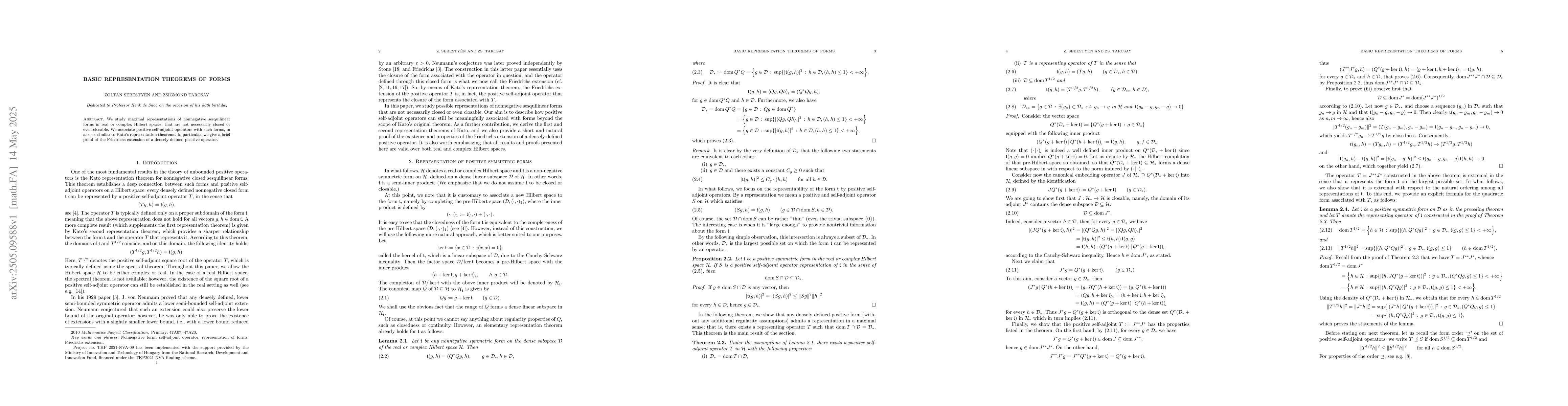 The paper investigates maximal representations of nonnegative sesquilinear forms in Hilbert spaces, associating positive self-adjoint operators with these forms, akin to Kato's representation theorems, and provides a proof for the Friedrichs extension of densely defined positive operators.