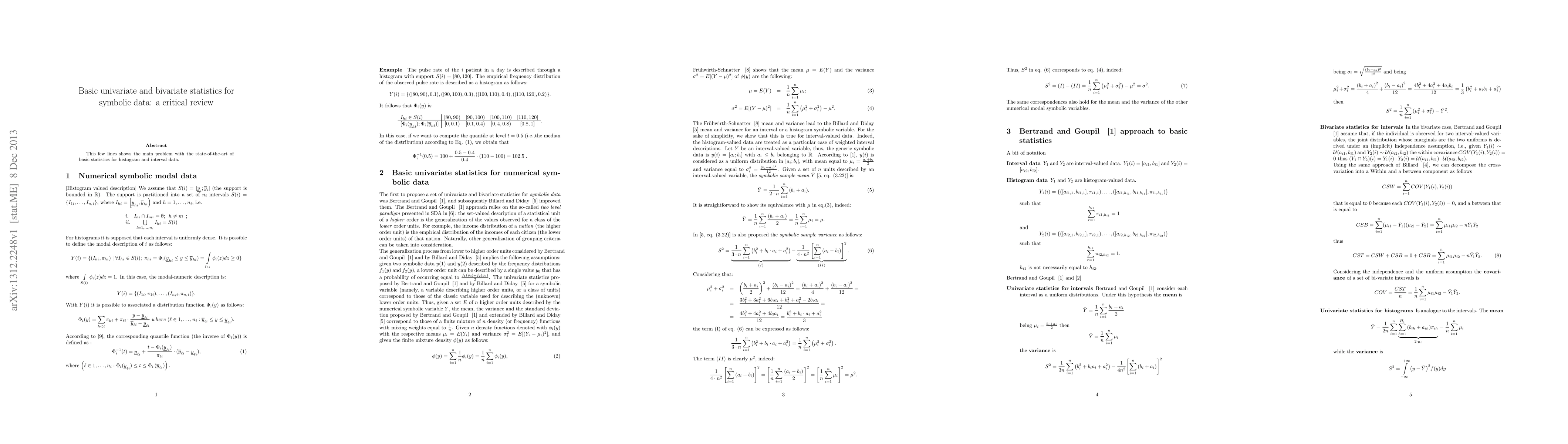 This review examines critical issues with basic statistics for numeric symbolic data, highlighting problems such as inaccurate modeling and misinterpretation of patterns. The study aims to provide a comprehensive understanding of the limitations of current statistical methods for this type of data.