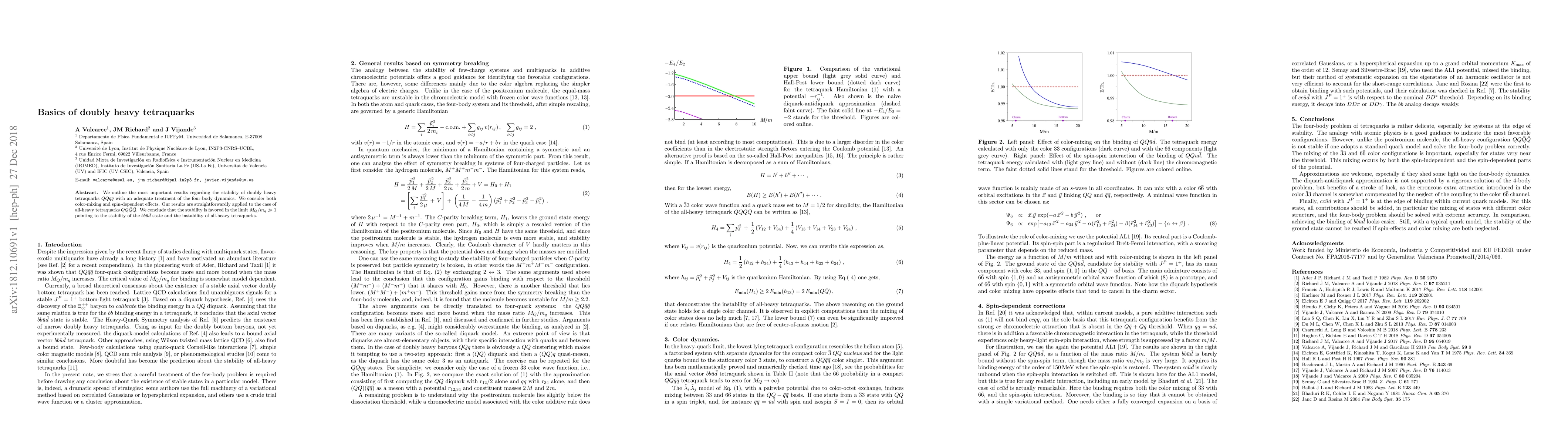 We outline the most important results regarding the stability of doubly heavy tetraquarks $QQ\bar q\bar q$ with an adequate treatment of the four-body dynamics. We consider both color-mixing and spin-dependent effects. Our results are straightforwardly applied to the case of all-heavy tetraquarks $QQ\bar Q\bar Q$. We conclude that the stability is favored in the limit $M_Q/m_q \gg 1$ pointing to the stability of the $bb\bar u\bar d$ state and the instability of all-heavy tetraquarks.