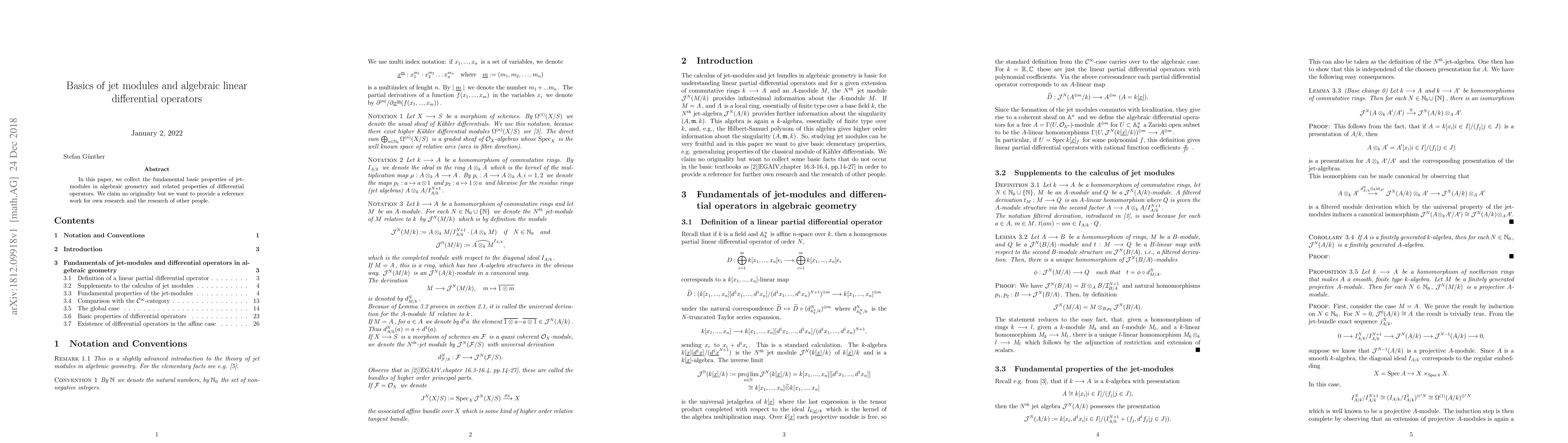 In this paper, we collect the fundamental basic properties of jet modules in algebraic geometry and related properties of differential operators. We claim no originality but we want to provide a reference work for own research and the research of other people.