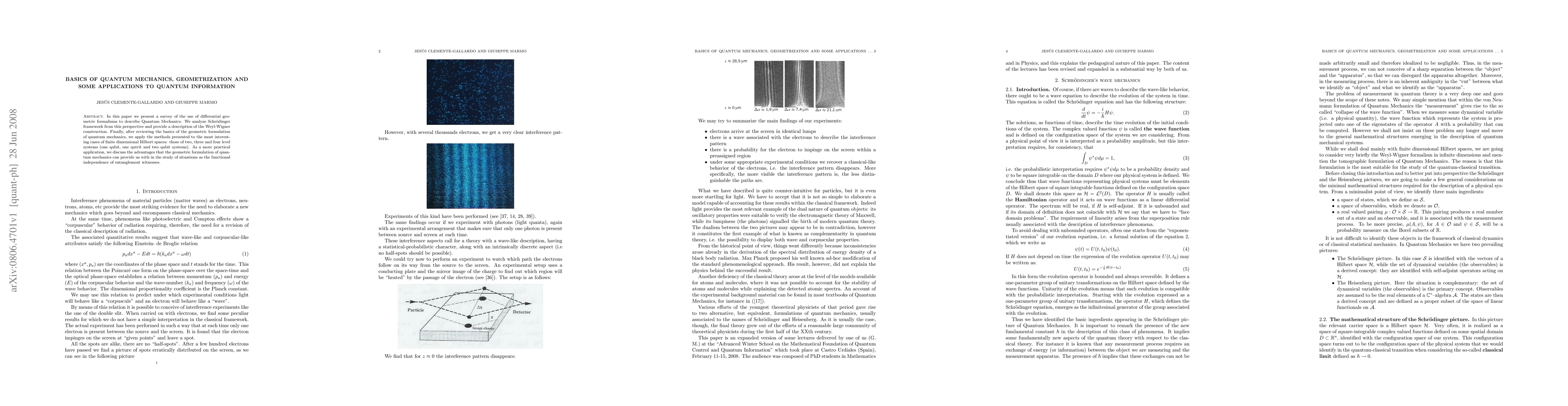 In this paper we present a survey of the use of differential geometric formalisms to describe Quantum Mechanics. We analyze Schr\"odinger framework from this perspective and provide a description of the Weyl-Wigner construction. Finally, after reviewing the basics of the geometric formulation of quantum mechanics, we apply the methods presented to the most interesting cases of finite dimensional Hilbert spaces: those of two, three and four level systems (one qubit, one qutrit and two qubit systems). As a more practical application, we discuss the advantages that the geometric formulation of quantum mechanics can provide us with in the study of situations as the functional independence of entanglement witnesses.
