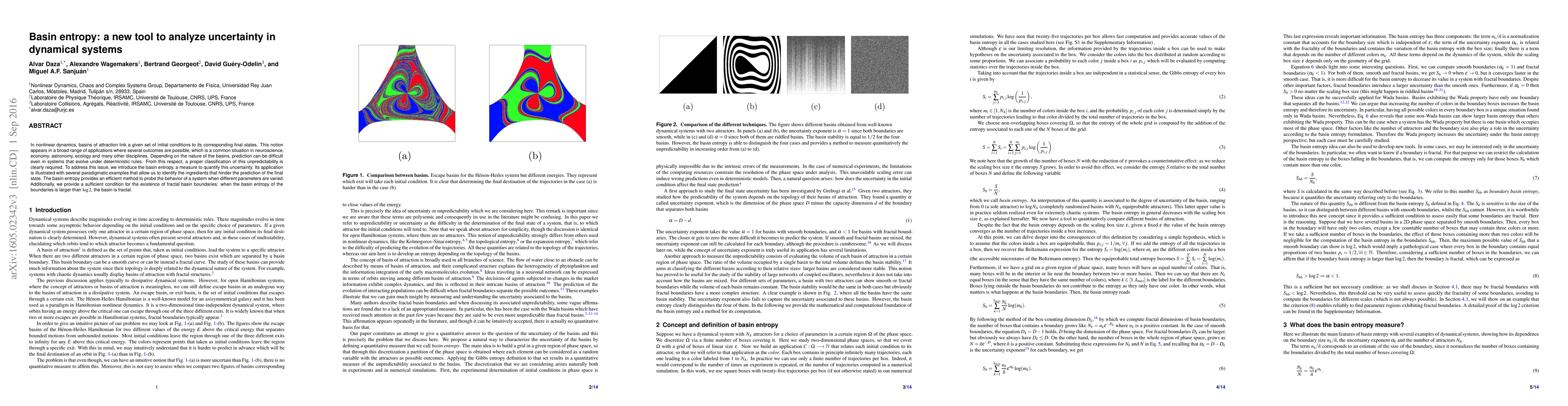 This paper introduces basin entropy as a new measure to quantify uncertainty in dynamical systems, particularly in scenarios where multiple outcomes are possible. The authors demonstrate its application in various fields and provide a condition for the existence of fractal basin boundaries.