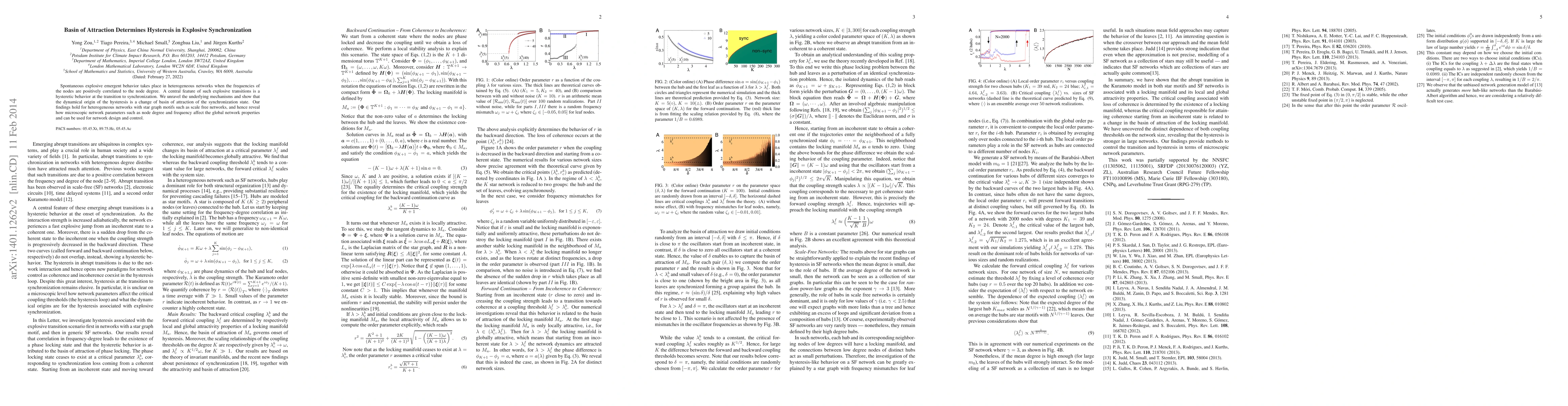 This paper investigates the hysteretic behavior in heterogeneous networks during explosive synchronization, attributing it to changes in the basin of attraction of the synchronization state. The findings apply to networks with star graph motifs, highlighting how node degree and frequency influence global network properties for design and control.