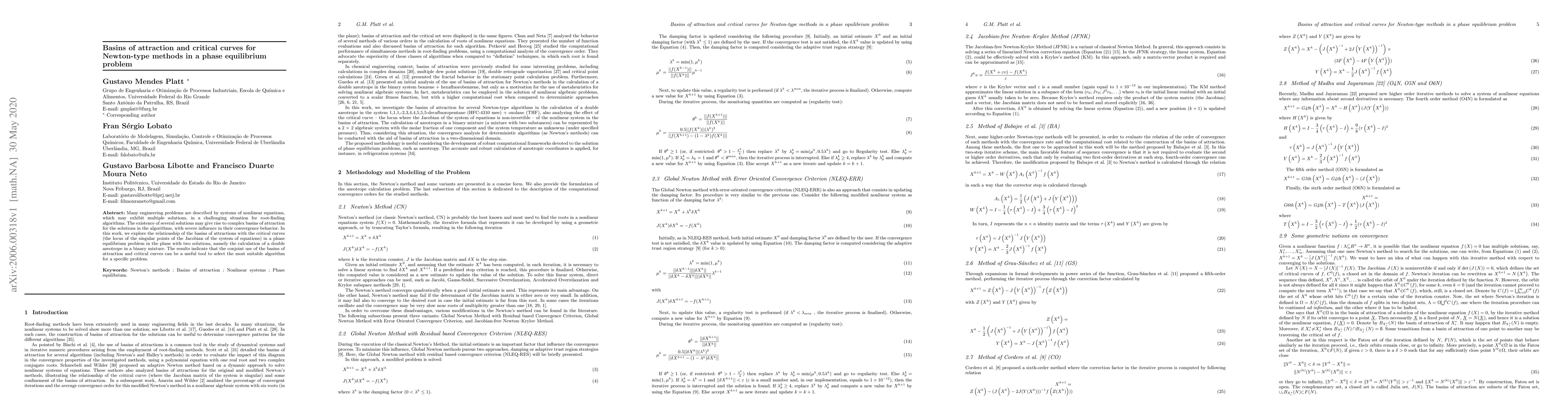 Researchers explore how basins of attraction and critical curves relate to Newton-type methods for solving systems of nonlinear equations in a phase equilibrium problem. They find that combining these tools helps select the most suitable algorithm for specific problems.