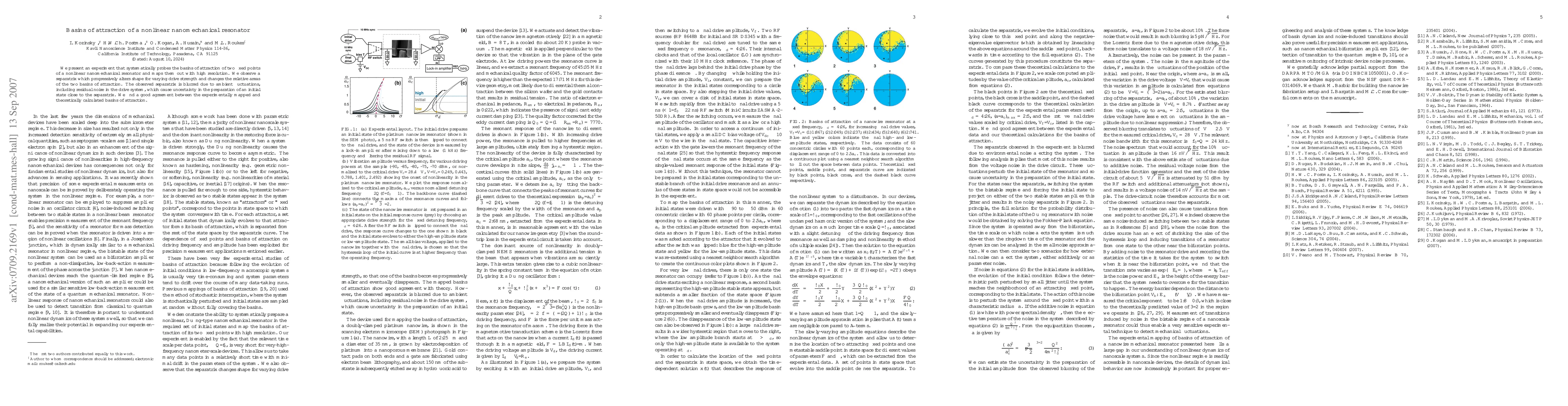 This research experimentally maps the basins of attraction for two fixed points in a nonlinear nanomechanical resonator, observing a shape-changing separatrix influenced by drive strength and ambient fluctuations. Theoretical calculations align well with the experimental results.