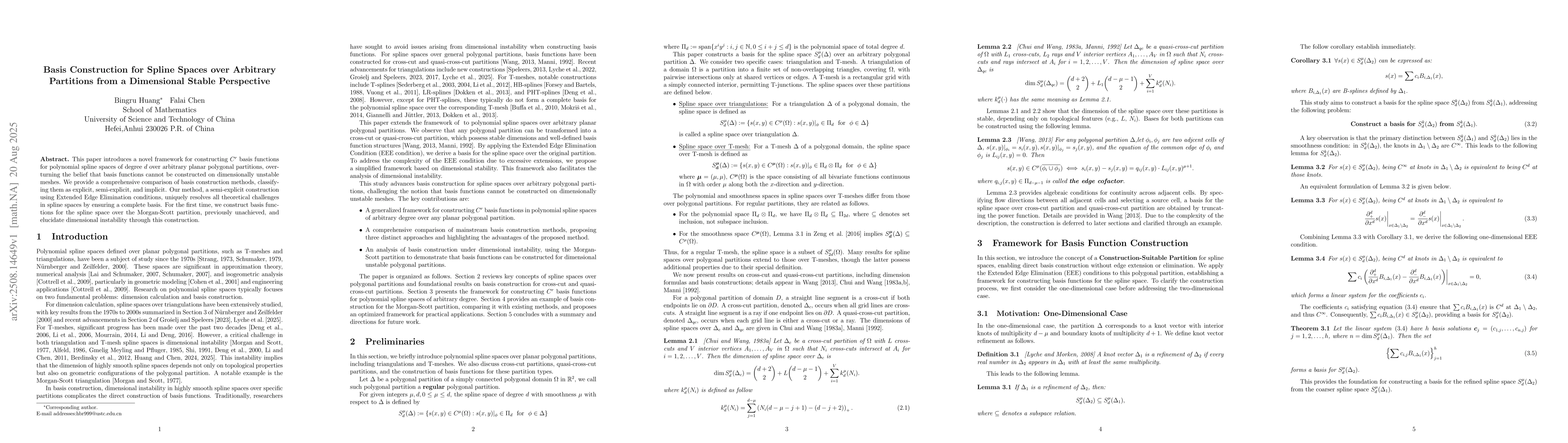 The paper introduces a novel framework for constructing $C^r$ basis functions for polynomial spline spaces of degree $d$ over arbitrary planar polygonal partitions using a semi-explicit construction with Extended Edge Elimination (EEE) conditions.