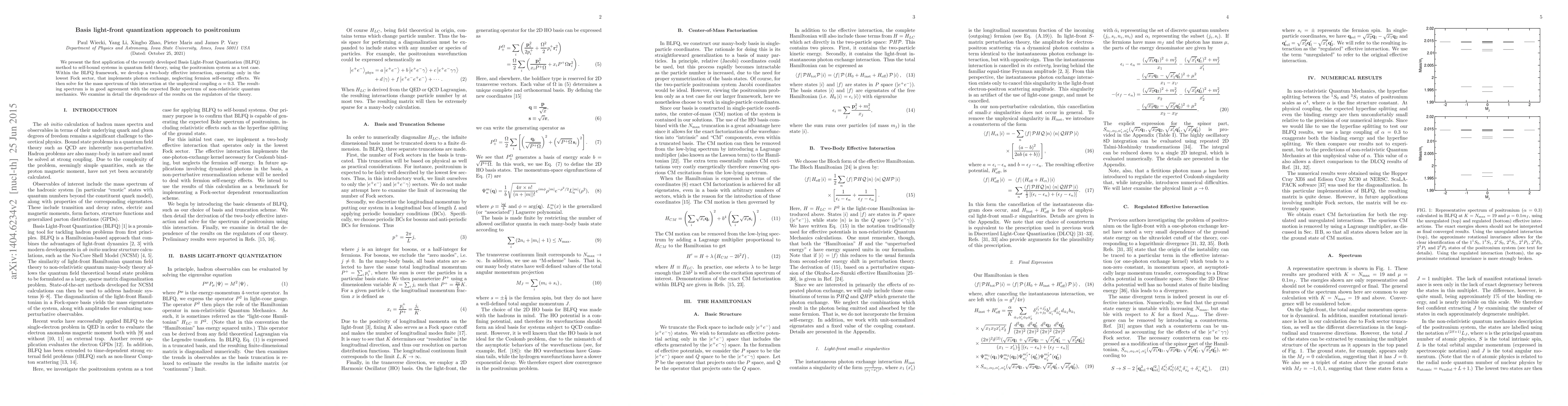 This paper applies the Basis Light-Front Quantization (BLFQ) method to positronium, developing a two-body effective interaction for photon exchange. The calculated mass spectrum at $\alpha=0.3$ aligns well with the Bohr spectrum, demonstrating the method's potential for self-bound systems in quantum field theory.
