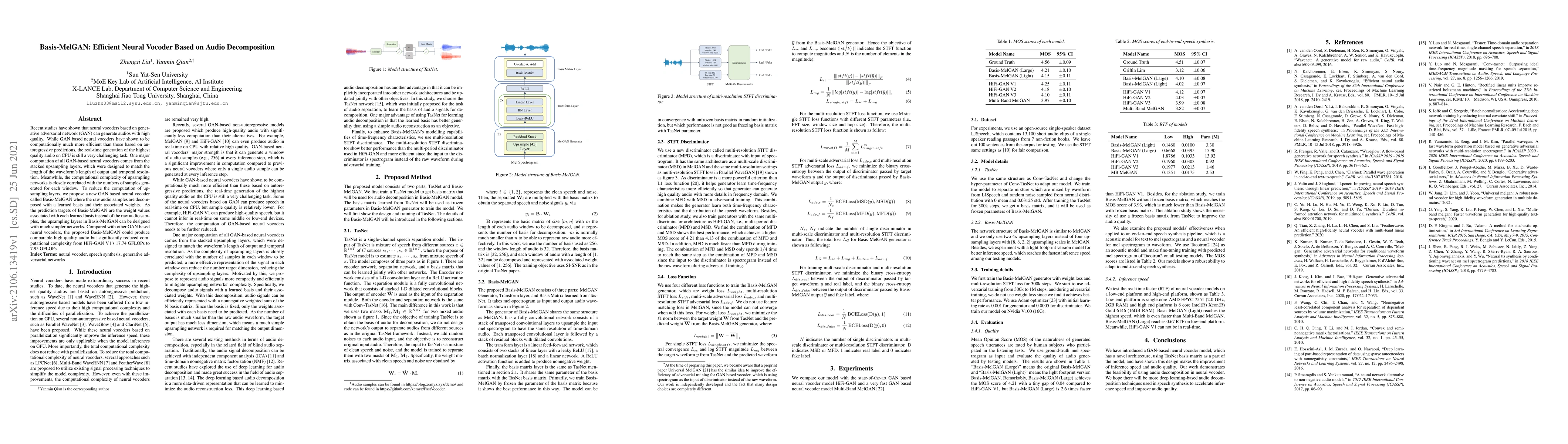 Basis-MelGAN is a new GAN-based neural vocoder that decomposes raw audio samples into learned basis and associated weights, reducing computational complexity by simplifying upsampling layers. It achieves high-quality audio generation with significantly lower computational cost compared to HiFi-GAN V1.