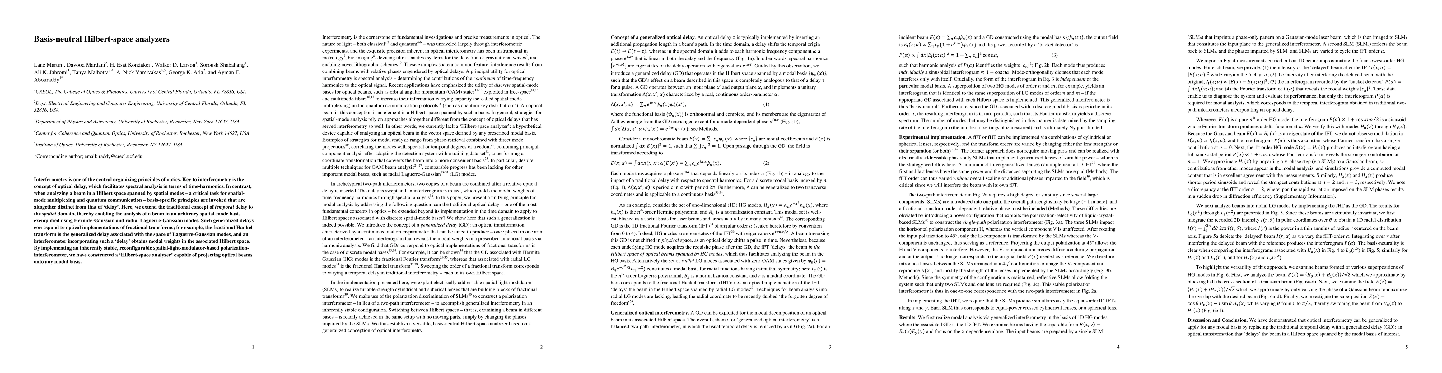 Interferometry is one of the central organizing principles of optics. Key to interferometry is the concept of optical delay, which facilitates spectral analysis in terms of time-harmonics. In contrast, when analyzing a beam in a Hilbert space spanned by spatial modes -- a critical task for spatial-mode multiplexing and quantum communication -- basis-specific principles are invoked that are altogether distinct from that of `delay.' Here, we extend the traditional concept of temporal delay to the spatial domain, thereby enabling the analysis of a beam in an arbitrary spatial-mode basis -- exemplified using Hermite-Gaussian and radial Laguerre-Gaussian modes. Such generalized delays correspond to optical implementations of fractional transforms; for example, the fractional Hankel transform is the generalized delay associated with the space of Laguerre-Gaussian modes, and an interferometer incorporating such a `delay' obtains modal weights in the associated Hilbert space. By implementing an inherently stable, reconfigurable spatial-light-modulator-based polarization- interferometer, we have constructed a `Hilbert-space analyzer' capable of projecting optical beams onto any modal basis.