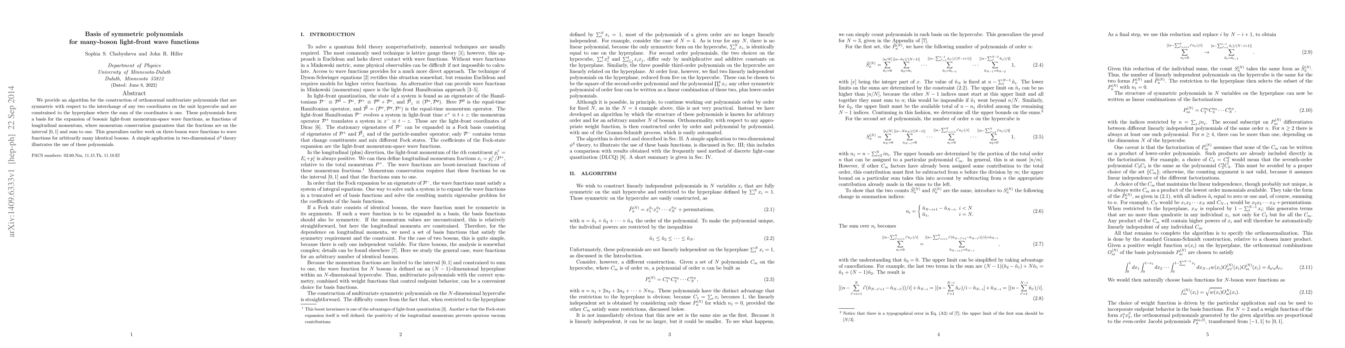 We provide an algorithm for the construction of orthonormal multivariate polynomials that are symmetric with respect to the interchange of any two coordinates on the unit hypercube and are constrained to the hyperplane where the sum of the coordinates is one. These polynomials form a basis for the expansion of bosonic light-front momentum-space wave functions, as functions of longitudinal momentum, where momentum conservation guarantees that the fractions are on the interval $[0,1]$ and sum to one. This generalizes earlier work on three-boson wave functions to wave functions for arbitrarily many identical bosons. A simple application in two-dimensional $\phi^4$ theory illustrates the use of these polynomials.