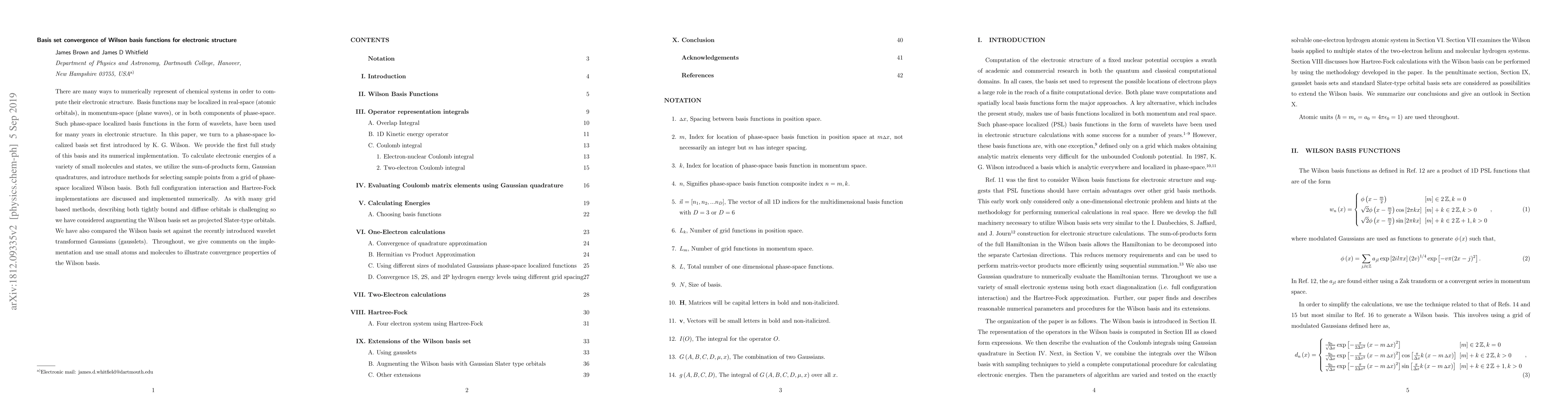 There are many ways to numerically represent of chemical systems in order to compute their electronic structure. Basis functions may be localized in real-space (atomic orbitals), in momentum-space (plane waves), or in both components of phase-space. Such phase-space localized basis functions in the form of wavelets, have been used for many years in electronic structure. In this paper, we turn to a phase-space localized basis set first introduced by K. G. Wilson. We provide the first full study of this basis and its numerical implementation. To calculate electronic energies of a variety of small molecules and states, we utilize the sum-of-products form, Gaussian quadratures, and introduce methods for selecting sample points from a grid of phase-space localized Wilson basis. Both full configuration interaction and Hartree-Fock implementations are discussed and implemented numerically. As with many grid based methods, describing both tightly bound and diffuse orbitals is challenging so we have considered augmenting the Wilson basis set as projected Slater-type orbitals. We have also compared the Wilson basis set against the recently introduced wavelet transformed Gaussians (gausslets). Throughout, we give comments on the implementation and use small atoms and molecules to illustrate convergence properties of the Wilson basis.