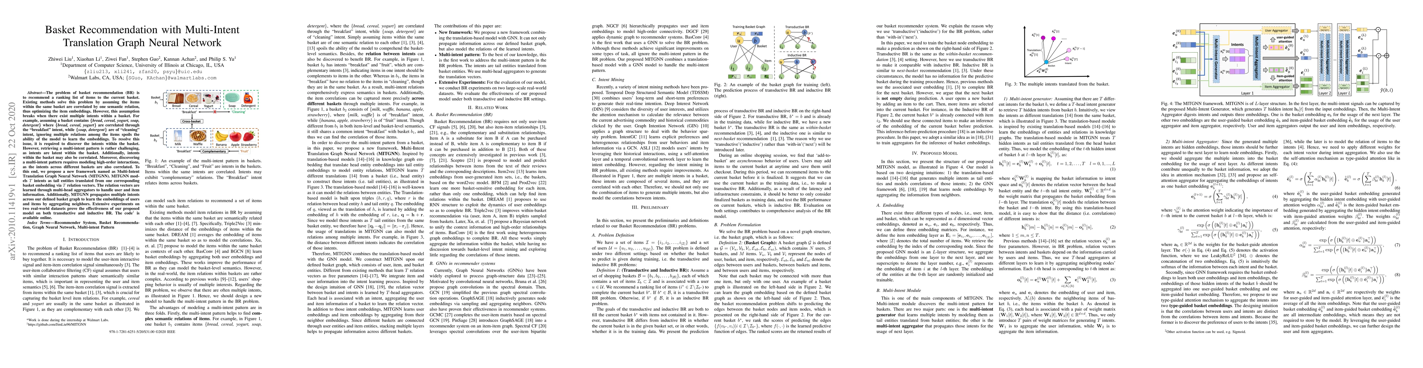 This paper proposes a Multi-Intent Translation Graph Neural Network (MITGNN) to address basket recommendation by discovering and modeling multiple latent intents within a basket. MITGNN translates basket embeddings into multiple intents using relation vectors, and propagates these intents across a basket graph to learn user and item embeddings, demonstrating improved performance on real-world datasets.