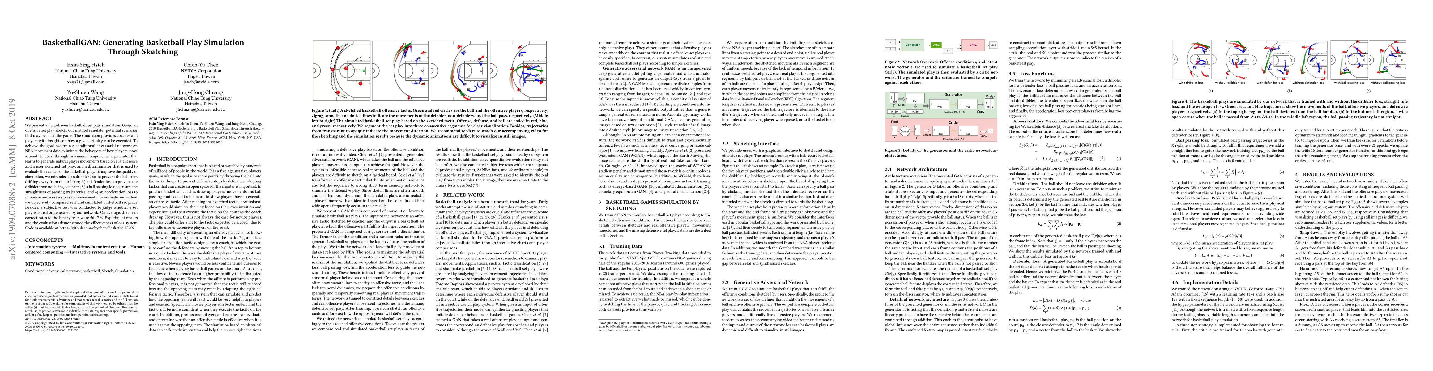 We present a data-driven basketball set play simulation. Given an offensive set play sketch, our method simulates potential scenarios that may occur in the game. The simulation provides coaches and players with insights on how a given set play can be executed. To achieve the goal, we train a conditional adversarial network on NBA movement data to imitate the behaviors of how players move around the court through two major components: a generator that learns to generate natural player movements based on a latent noise and a user sketched set play; and a discriminator that is used to evaluate the realism of the basketball play. To improve the quality of simulation, we minimize 1.) a dribbler loss to prevent the ball from drifting away from the dribbler; 2.) a defender loss to prevent the dribbler from not being defended; 3.) a ball passing loss to ensure the straightness of passing trajectories; and 4) an acceleration loss to minimize unnecessary players' movements. To evaluate our system, we objectively compared real and simulated basketball set plays. Besides, a subjective test was conducted to judge whether a set play was real or generated by our network. On average, the mean correct rates to the binary tests were 56.17 \%. Experiment results and the evaluations demonstrated the effectiveness of our system.