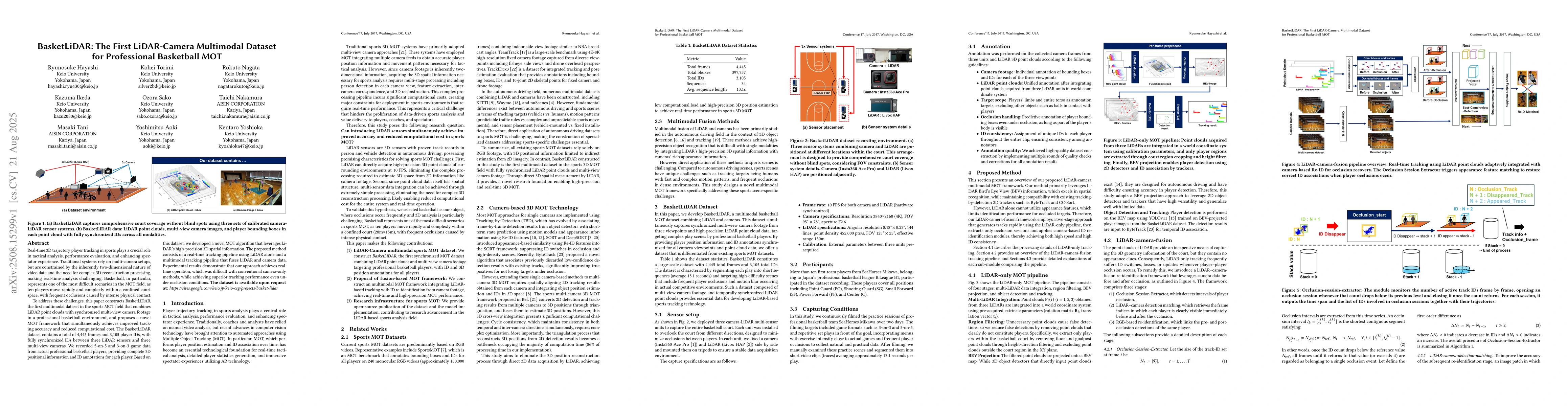 Real-time 3D trajectory player tracking in sports plays a crucial role in tactical analysis, performance evaluation, and enhancing spectator experience. Traditional systems rely on multi-camera setups, but are constrained by the inherently two-dimensional nature of video data and the need for complex 3D reconstruction processing, making real-time analysis challenging. Basketball, in particular, represents one of the most difficult scenarios in the MOT field, as ten players move rapidly and complexly within a confined court space, with frequent occlusions caused by intense physical contact. To address these challenges, this paper constructs BasketLiDAR, the first multimodal dataset in the sports MOT field that combines LiDAR point clouds with synchronized multi-view camera footage in a professional basketball environment, and proposes a novel MOT framework that simultaneously achieves improved tracking accuracy and reduced computational cost. The BasketLiDAR dataset contains a total of 4,445 frames and 3,105 player IDs, with fully synchronized IDs between three LiDAR sensors and three multi-view cameras. We recorded 5-on-5 and 3-on-3 game data from actual professional basketball players, providing complete 3D positional information and ID annotations for each player. Based on this dataset, we developed a novel MOT algorithm that leverages LiDAR's high-precision 3D spatial information. The proposed method consists of a real-time tracking pipeline using LiDAR alone and a multimodal tracking pipeline that fuses LiDAR and camera data. Experimental results demonstrate that our approach achieves real-time operation, which was difficult with conventional camera-only methods, while achieving superior tracking performance even under occlusion conditions. The dataset is available upon request at: https://sites.google.com/keio.jp/keio-csg/projects/basket-lidar