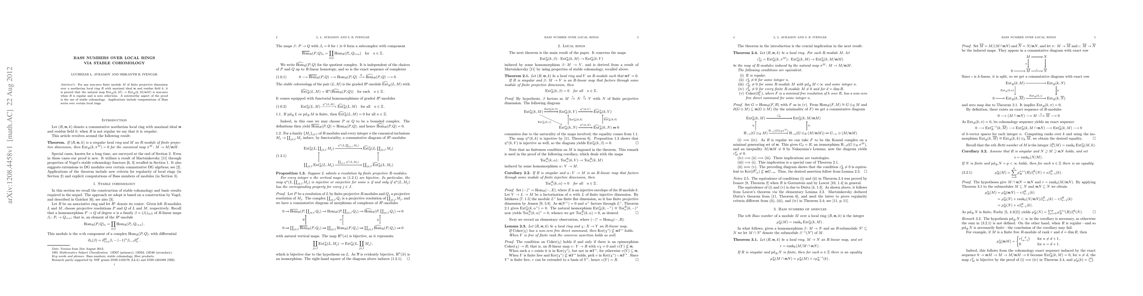 For any non-zero finite module M of finite projective dimension over a noetherian local ring R with maximal ideal m and residue field k, it is proved that the natural map Ext_R(k,M)-->Ext_R(k,M/mM) is non-zero when R is regular and is zero otherwise. A noteworthy aspect of the proof is the use of stable cohomology. Applications include computations of Bass series over certain local rings.