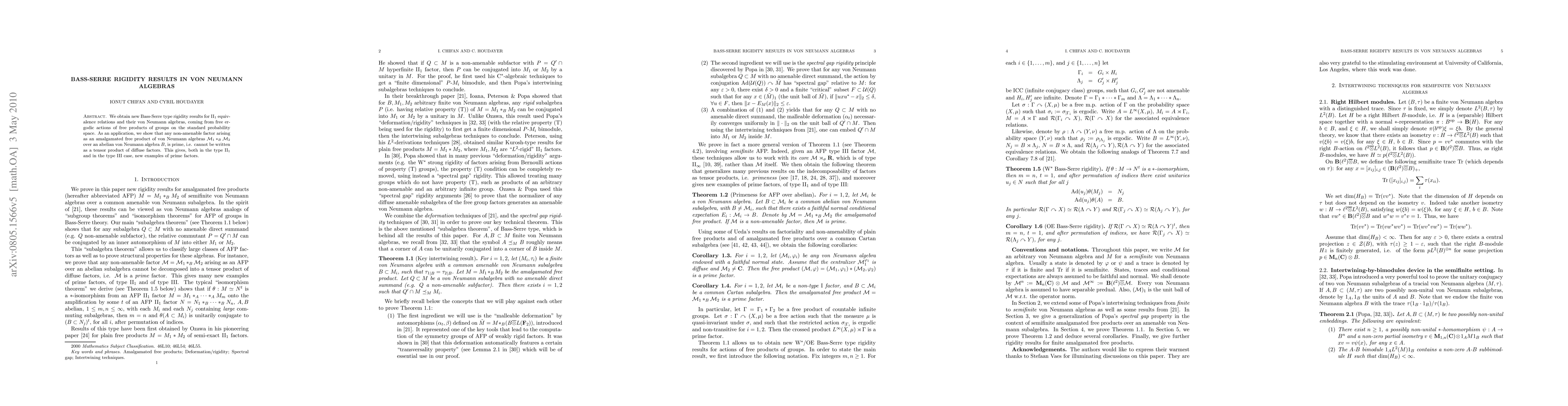 This paper establishes new Bass-Serre rigidity results for ${\rm II_1}$ equivalence relations and their associated von Neumann algebras, derived from free ergodic actions of free products of groups. It demonstrates that non-amenable factors formed by amalgamated free products of von Neumann algebras over an abelian algebra are prime and cannot be expressed as tensor products of diffuse factors.