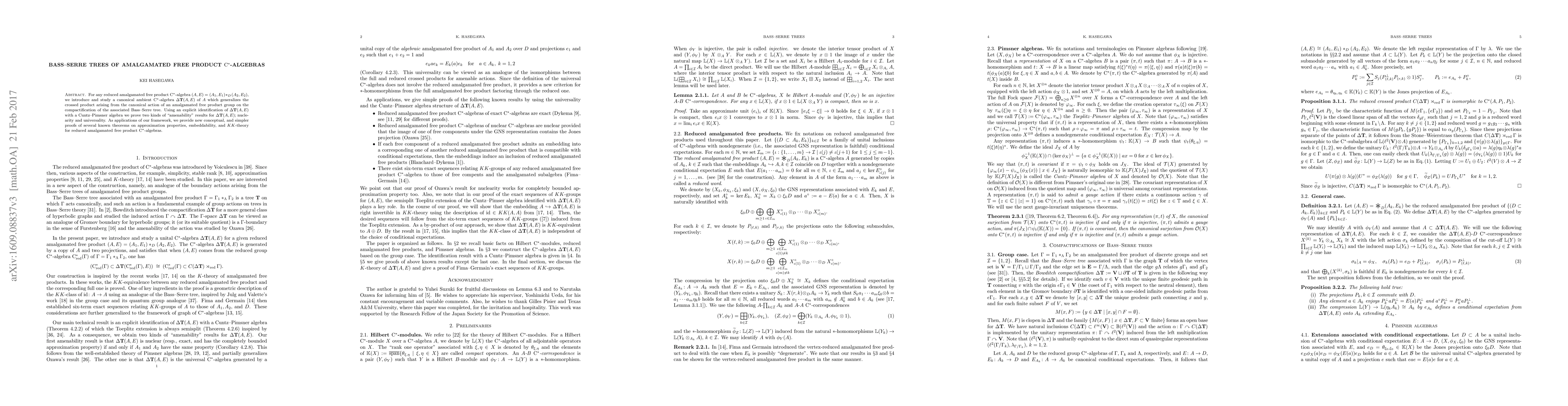 For any reduced amalgamated free product $\mathrm{C}^*$-algebra $(A,E)=(A_1, E_1) \ast_D (A_2,E_2)$, we introduce and study a canonical ambient $\mathrm{C}^*$-algebra $\Delta\mathbf{T}(A,E)$ of $A$ which generalizes the crossed product arising from the canonical action of an amalgamated free product group on the compactification of the associated Bass--Serre tree. Using an explicit identification of $\Delta \mathbf{T}(A,E)$ with a Cuntz--Pimsner algebra we prove two kinds of "amenability" results for $\Delta \mathbf{T}(A,E)$; nuclearity and universality. As applications of our framework, we provide new conceptual, and simpler proofs of several known theorems on approximation properties, embeddability, and $KK$-theory for reduced amalgamated free product $\mathrm{C}^*$-algebras.