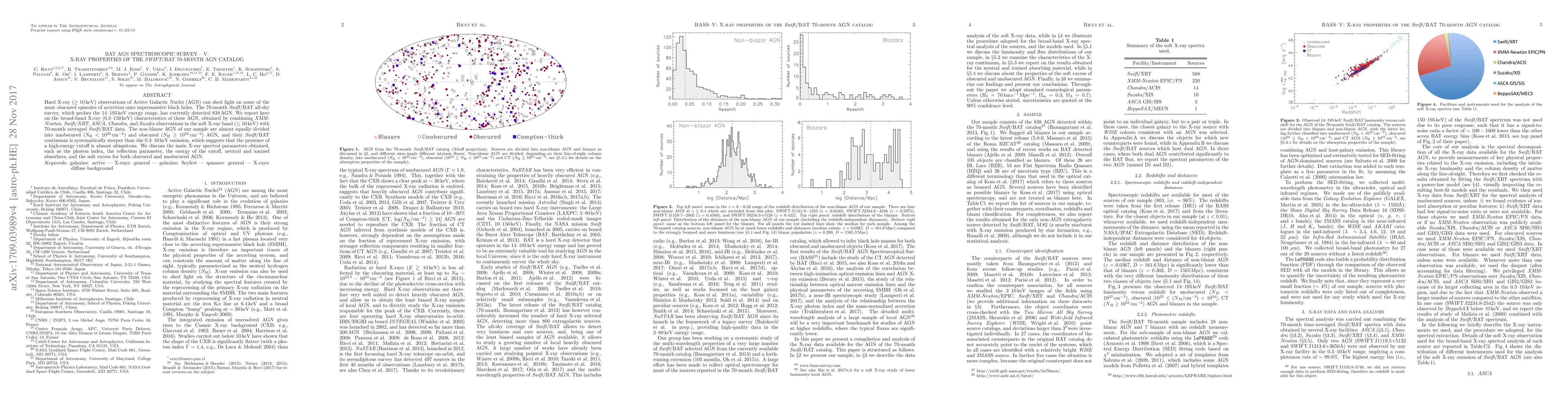 This paper investigates the X-ray properties of 838 AGN detected in the 70-month Swift/BAT survey, combining data from various X-ray observatories. It finds that non-blazar AGN are nearly equally split between unobscured and obscured types, with a high-energy cutoff in their Swift/BAT continuum almost ubiquitous.