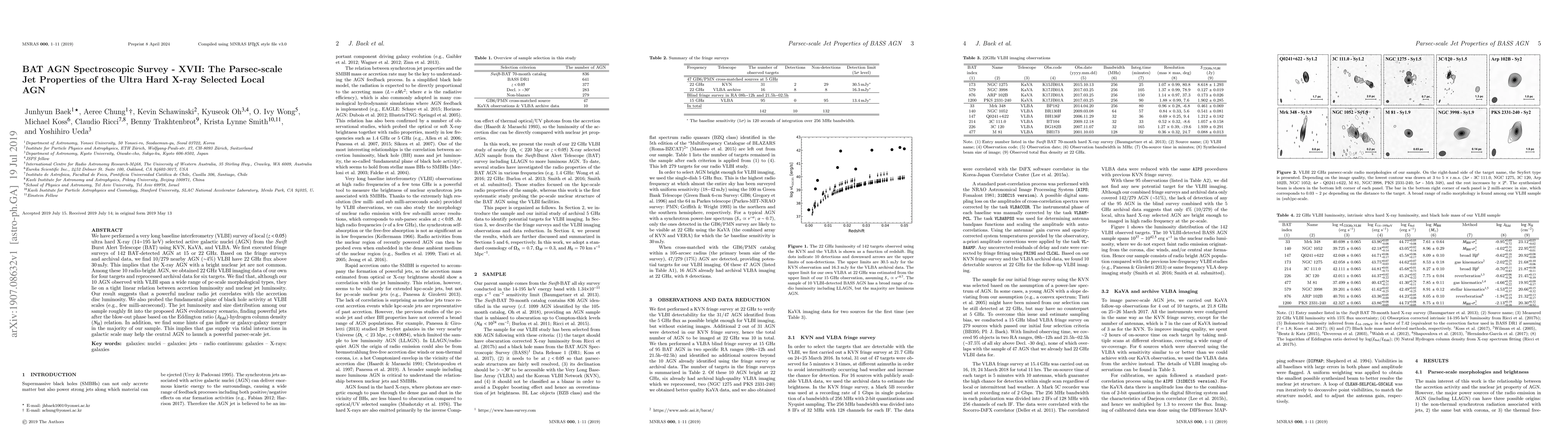 This paper reports on a VLBI survey of local ultra-hard X-ray selected AGN, finding that only ~4% exhibit bright nuclear jets. The study reveals a correlation between accretion luminosity and nuclear jet luminosity, suggesting powerful jets are linked to higher accretion rates.