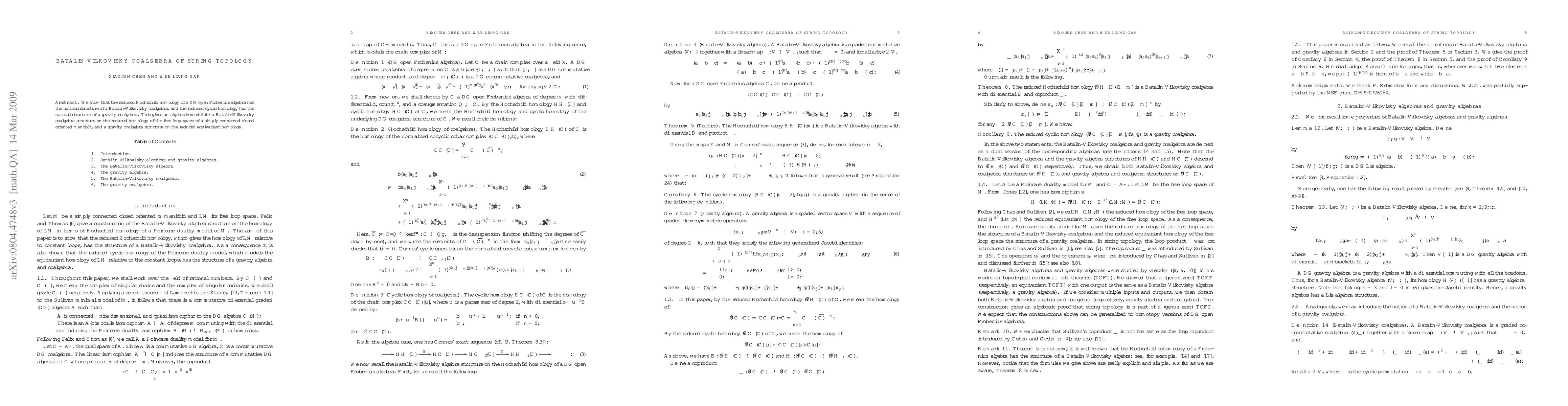We show that the reduced Hochschild homology of a DG open Frobenius algebra has the natural structure of a Batalin-Vilkovisky coalgebra, and the reduced cyclic homology has the natural structure of a gravity coalgebra. This gives an algebraic model for a Batalin-Vilkovisky coalgebra structure on the reduced homology of the free loop space of a simply connected closed oriented manifold, and a gravity coalgebra structure on the reduced equivariant homology.