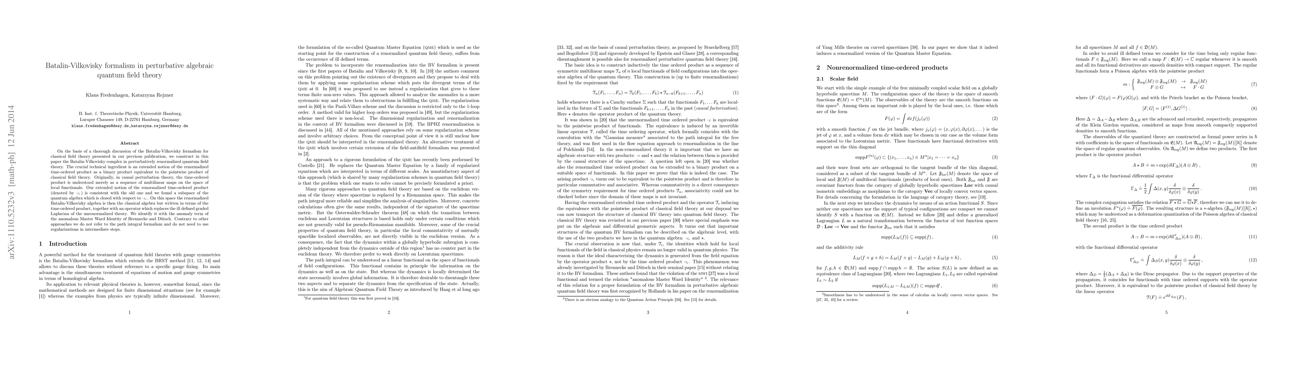 This paper extends the Batalin-Vilkovisky formalism to perturbatively renormalized quantum field theory by proving the equivalence of the renormalized time-ordered product to the pointwise product, and identifies it with the anomaly term of the anomalous Master Ward Identity, all without relying on path integral or regularization methods.