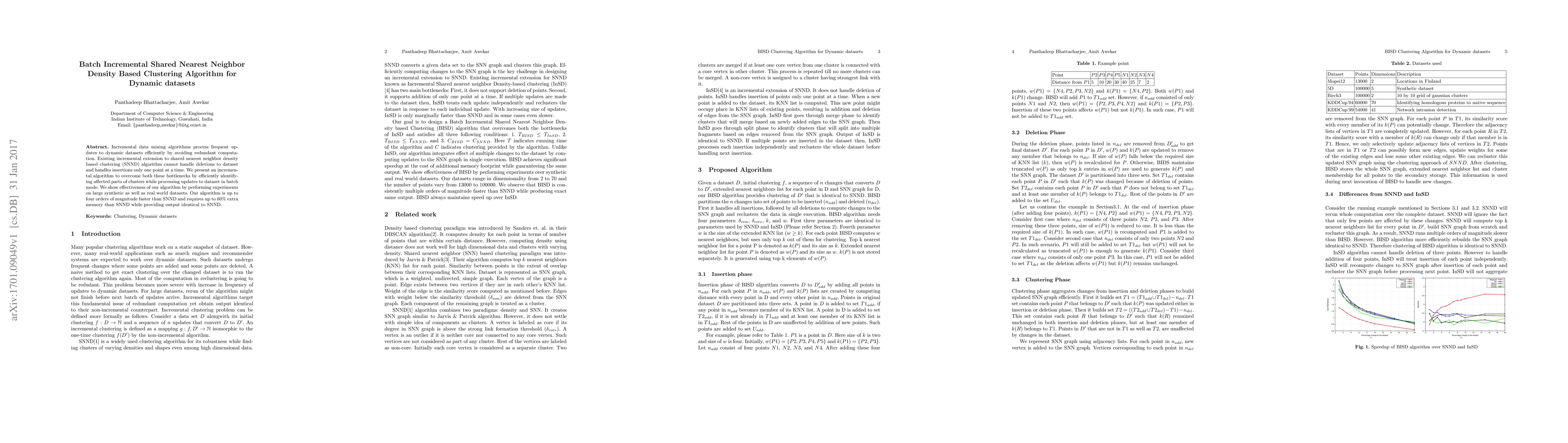This paper introduces an incremental clustering algorithm for dynamic datasets that efficiently handles both insertions and deletions in batch mode, significantly improving upon existing shared nearest neighbor density-based clustering (SNND) methods. The proposed algorithm is up to four orders of magnitude faster than SNND while maintaining identical clustering results.