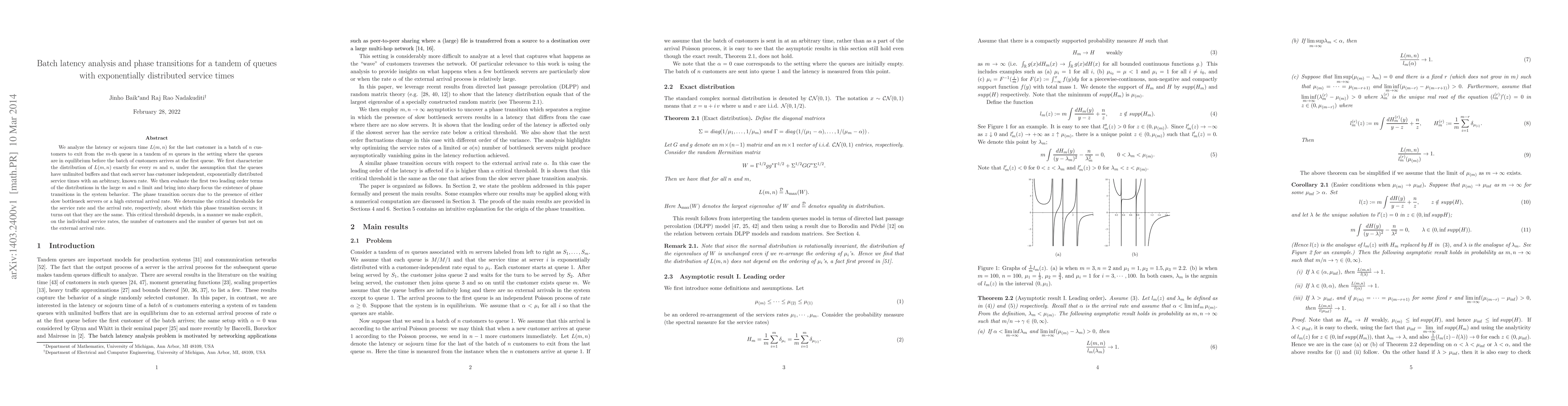 This paper analyzes the latency for the last customer in a batch to exit from the final queue in a tandem of m queues with exponentially distributed service times, identifying phase transitions due to bottlenecks or high arrival rates, and determining the critical thresholds for these transitions.
