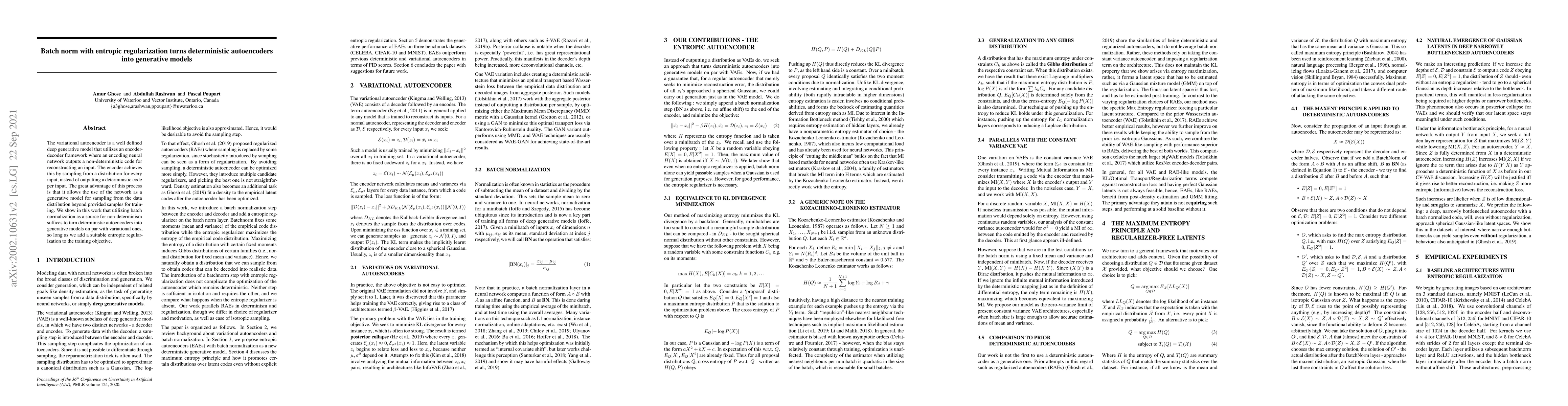 This paper demonstrates that incorporating batch normalization with entropic regularization can transform deterministic autoencoders into generative models comparable to variational autoencoders, achieving similar generative capabilities without the need for sampling from a distribution in the encoder.