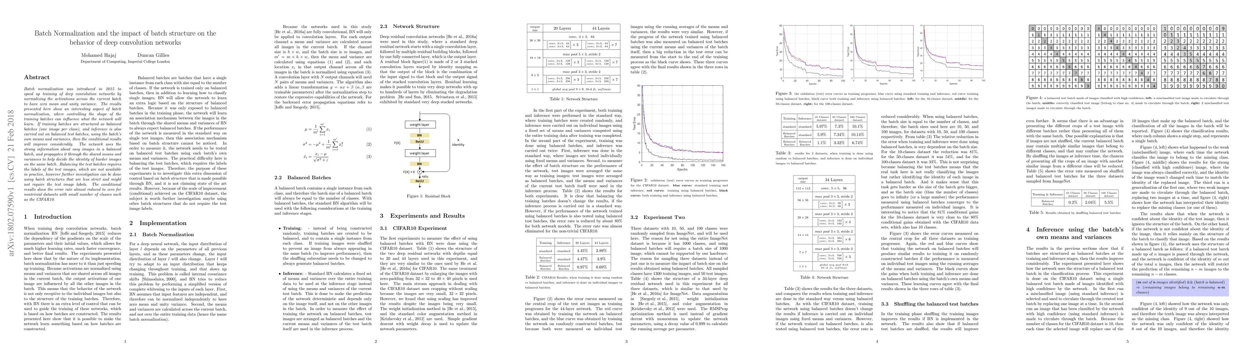 This paper explores how batch normalization in deep convolutional networks is affected by the structure of training batches, demonstrating that balanced batches (one image per class) can significantly improve conditional results. The network leverages the information from easier images to aid in identifying harder ones within the same batch, leading to near-zero error rates on small-class datasets like CIFAR10.