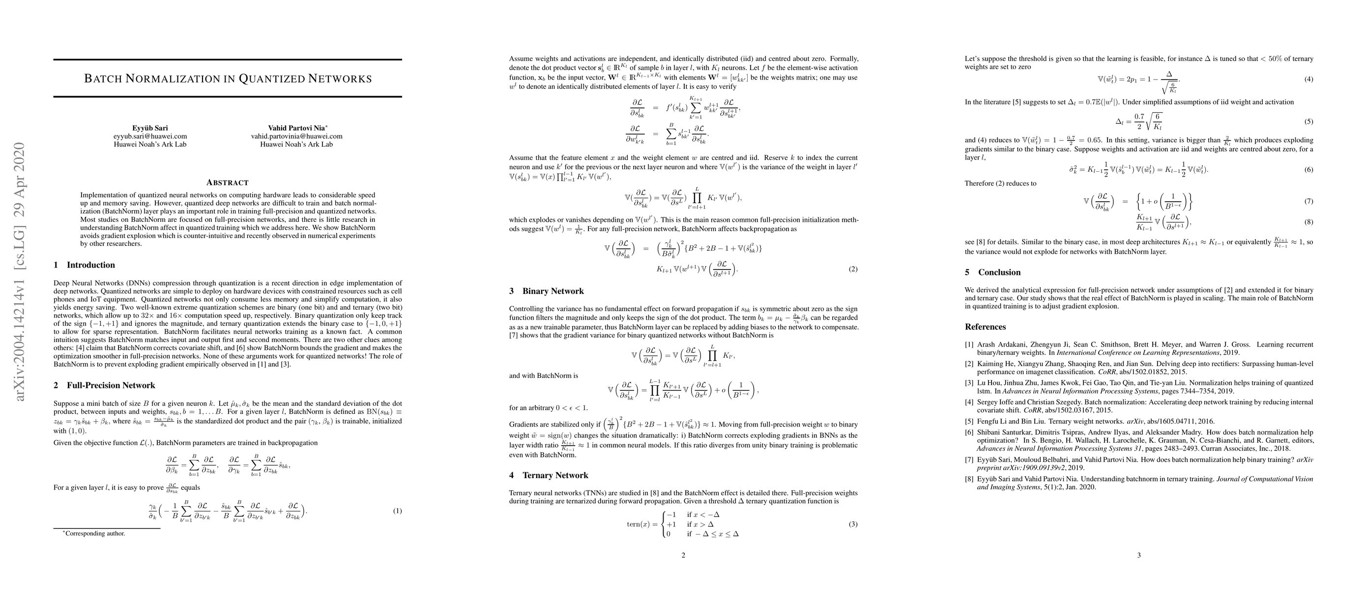 This paper investigates the role of Batch Normalization in training quantized neural networks, demonstrating that it mitigates gradient explosion, a phenomenon recently observed in experiments, despite the counter-intuitive nature of this effect in quantized settings.