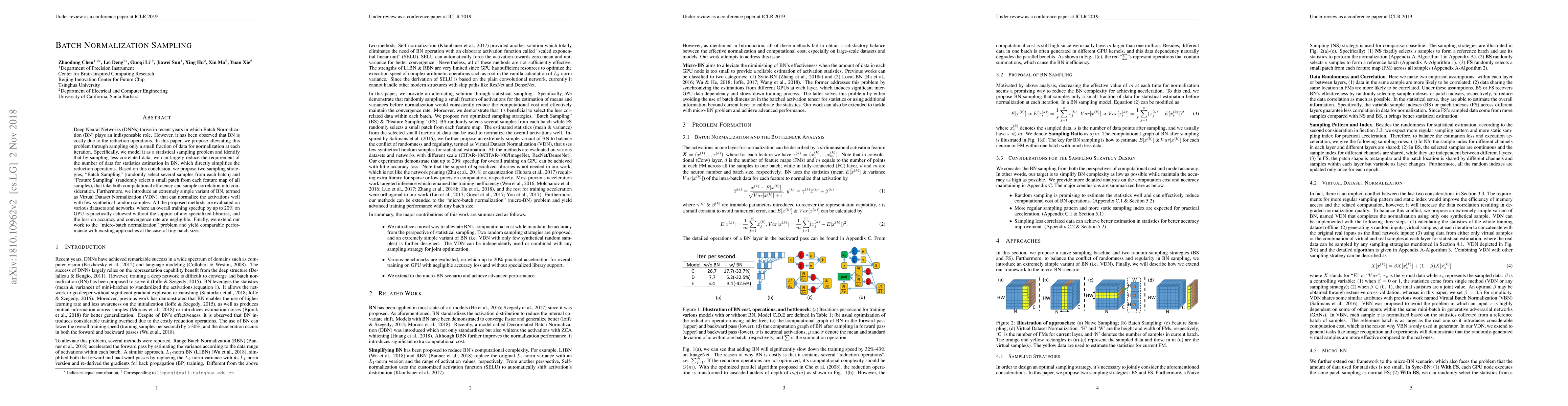 This paper proposes sampling strategies to reduce the computational cost of Batch Normalization in DNNs by normalizing with a small fraction of data, introducing "Batch Sampling" and "Feature Sampling" methods. It also presents Virtual Dataset Normalization (VDN) for efficient normalization with minimal samples, achieving up to 20% speedup on GPU with negligible loss in accuracy.