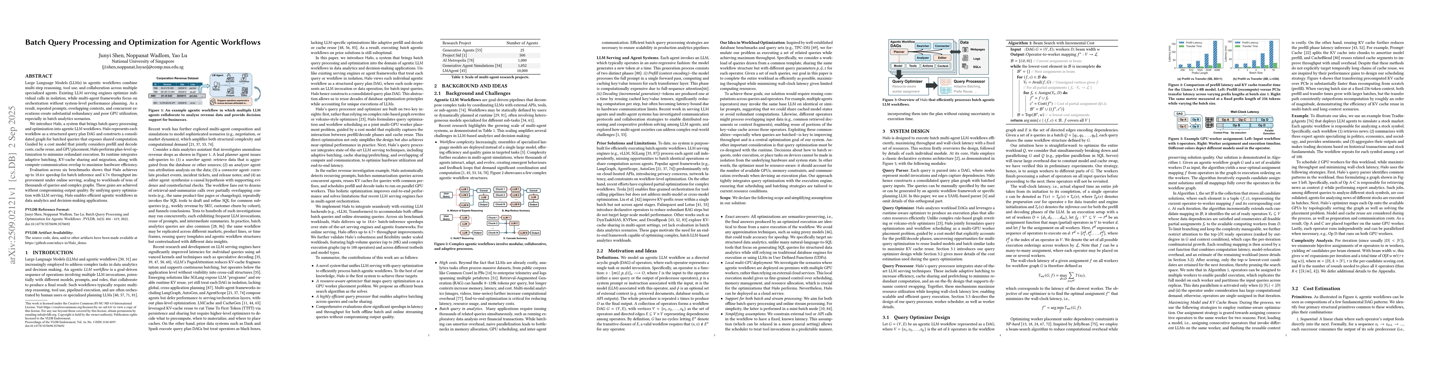 Large Language Models (LLMs) in agentic workflows combine multi-step reasoning, tool use, and collaboration across multiple specialized agents. Existing LLM serving engines optimize individual calls in isolation, while multi-agent frameworks focus on orchestration without system-level performance planning. As a result, repeated prompts, overlapping contexts, and concurrent executions create substantial redundancy and poor GPU utilization, especially in batch analytics scenarios. We introduce Halo, a system that brings batch query processing and optimization into agentic LLM workflows. Halo represents each workflow as a structured query plan DAG and constructs a consolidated graph for batched queries that exposes shared computation. Guided by a cost model that jointly considers prefill and decode costs, cache reuse, and GPU placement, Halo performs plan-level optimization to minimize redundant execution. Its runtime integrates adaptive batching, KV-cache sharing and migration, along with compute-communication overlap to maximize hardware efficiency. Evaluation across six benchmarks shows that Halo achieves up to 18.6x speedup for batch inference and 4.7x throughput improvement under online serving, scaling to workloads of tens of thousands of queries and complex graphs. These gains are achieved without compromising output quality. By unifying query optimization with LLM serving, Halo enables efficient agentic workflows in data analytics and decision-making applications.