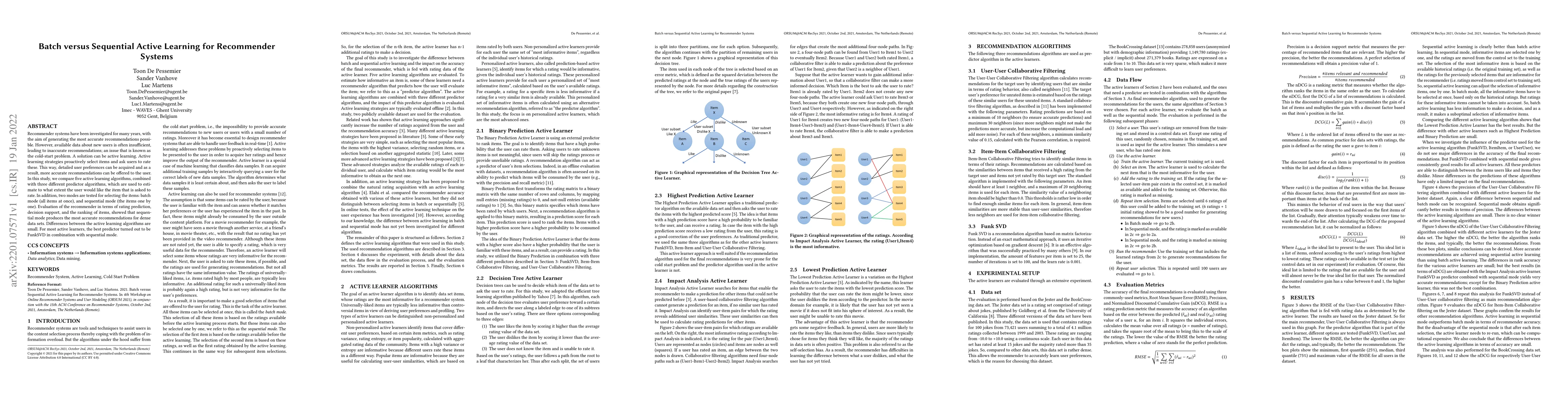 This research compares the effectiveness of batch versus sequential active learning in recommender systems, finding that sequential mode offers more accurate recommendations, especially for dense data sets. The best combination is FunkSVD predictor with sequential active learning.