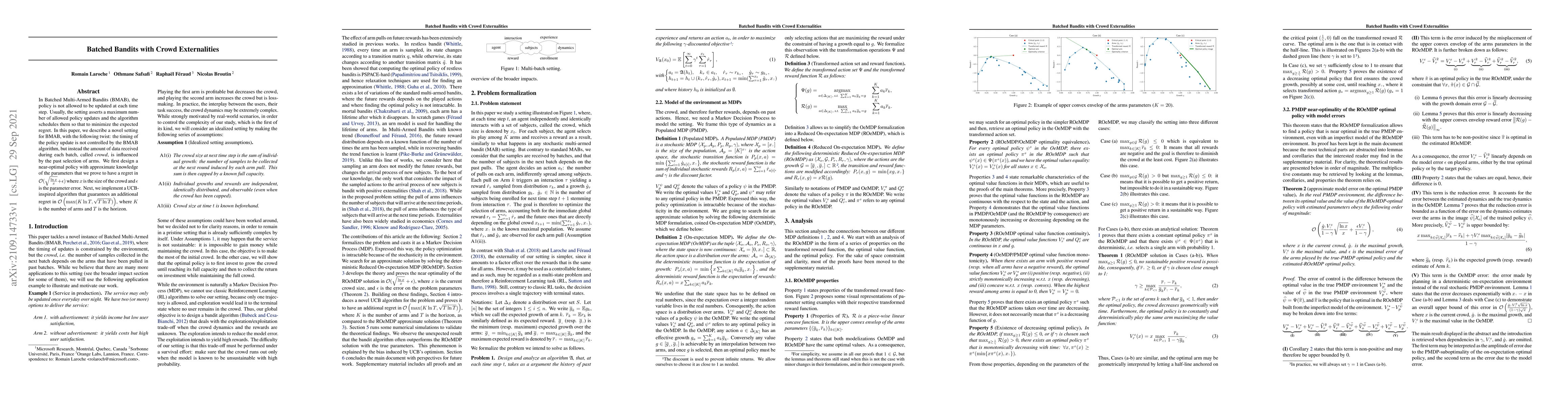 In Batched Multi-Armed Bandits (BMAB), the policy is not allowed to be updated at each time step. Usually, the setting asserts a maximum number of allowed policy updates and the algorithm schedules them so that to minimize the expected regret. In this paper, we describe a novel setting for BMAB, with the following twist: the timing of the policy update is not controlled by the BMAB algorithm, but instead the amount of data received during each batch, called \textit{crowd}, is influenced by the past selection of arms. We first design a near-optimal policy with approximate knowledge of the parameters that we prove to have a regret in $\mathcal{O}(\sqrt{\frac{\ln x}{x}}+\epsilon)$ where $x$ is the size of the crowd and $\epsilon$ is the parameter error. Next, we implement a UCB-inspired algorithm that guarantees an additional regret in $\mathcal{O}\left(\max(K\ln T,\sqrt{T\ln T})\right)$, where $K$ is the number of arms and $T$ is the horizon.