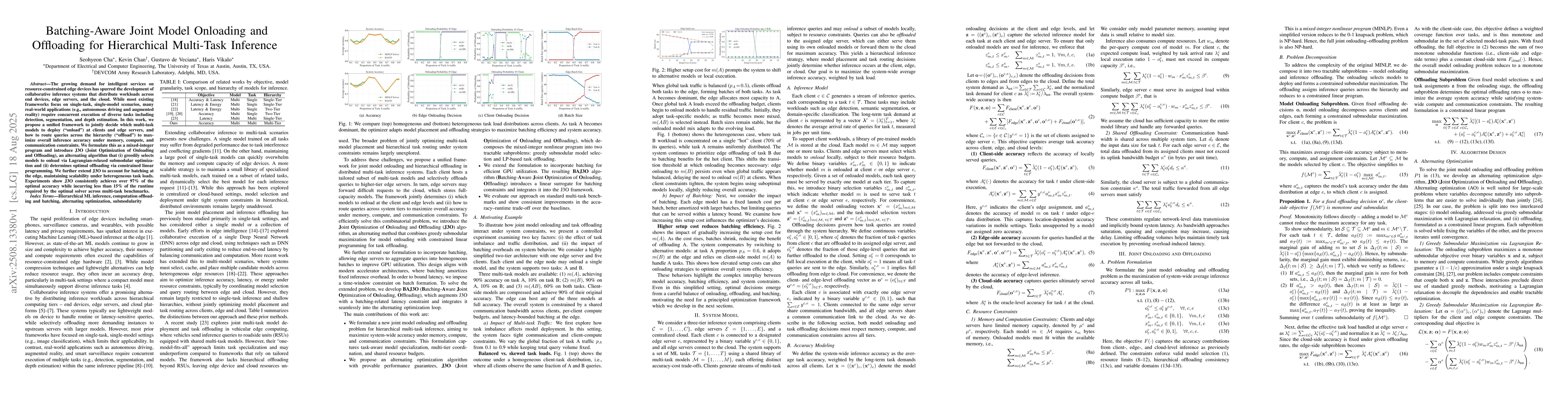 The growing demand for intelligent services on resource-constrained edge devices has spurred the development of collaborative inference systems that distribute workloads across end devices, edge servers, and the cloud. While most existing frameworks focus on single-task, single-model scenarios, many real-world applications (e.g., autonomous driving and augmented reality) require concurrent execution of diverse tasks including detection, segmentation, and depth estimation. In this work, we propose a unified framework to jointly decide which multi-task models to deploy (onload) at clients and edge servers, and how to route queries across the hierarchy (offload) to maximize overall inference accuracy under memory, compute, and communication constraints. We formulate this as a mixed-integer program and introduce J3O (Joint Optimization of Onloading and Offloading), an alternating algorithm that (i) greedily selects models to onload via Lagrangian-relaxed submodular optimization and (ii) determines optimal offloading via constrained linear programming. We further extend J3O to account for batching at the edge, maintaining scalability under heterogeneous task loads. Experiments show J3O consistently achieves over $97\%$ of the optimal accuracy while incurring less than $15\%$ of the runtime required by the optimal solver across multi-task benchmarks.