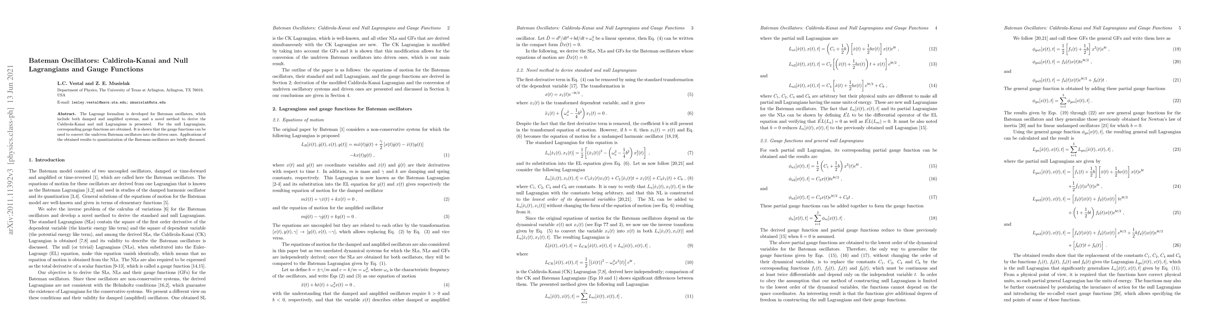 This paper develops the Lagrange formalism for Bateman oscillators, presenting a novel method to derive Caldirola-Kanai and null Lagrangians, and obtaining corresponding gauge functions. The gauge functions enable conversion of undriven to driven Bateman oscillators, with brief discussion on their application in quantization.