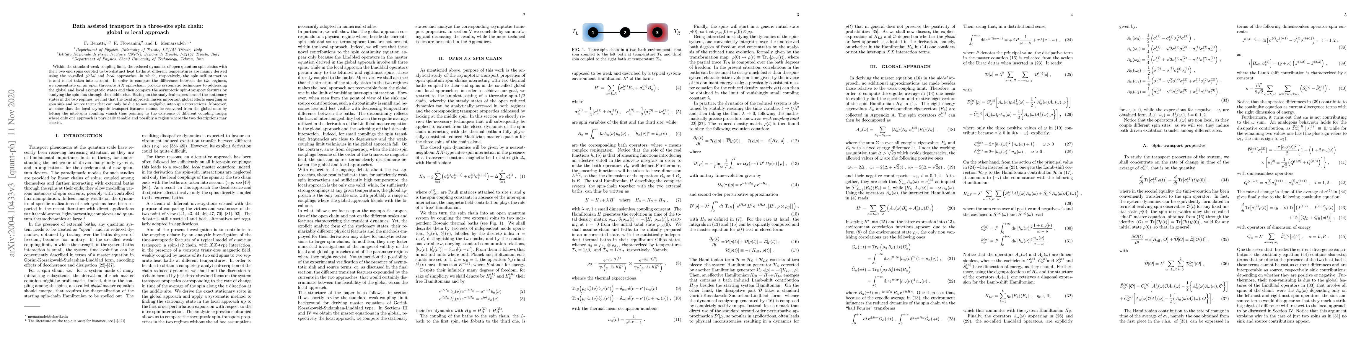 Researchers compared two approaches to studying a three-site spin chain connected to different heat baths, finding that local approach misses global effects and only applies within specific coupling ranges.