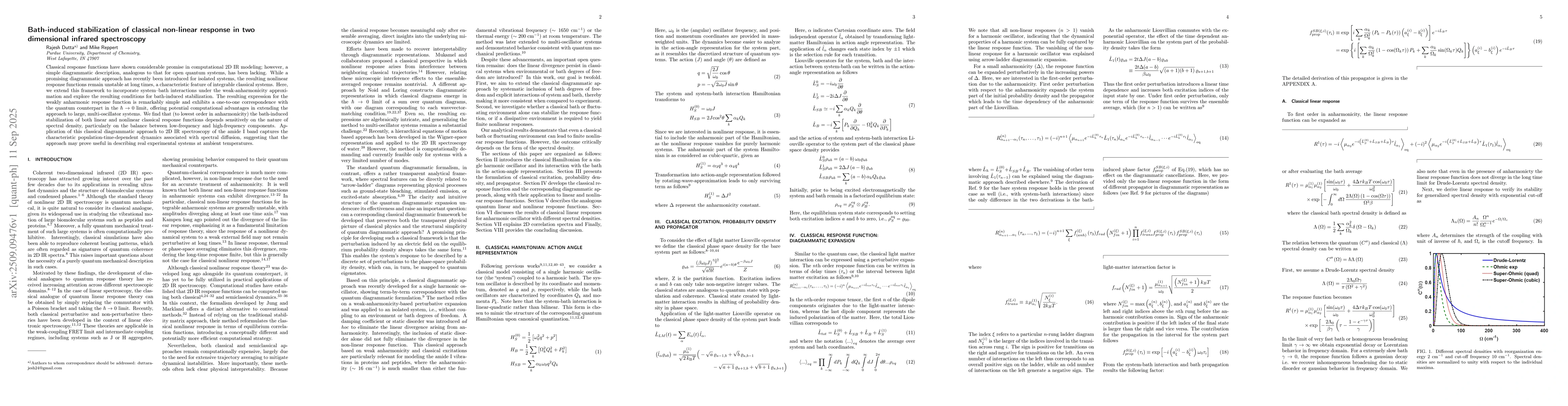 Classical response functions have shown considerable promise in computational 2D IR modeling; however, a simple diagrammatic description, analogous to that for open quantum systems, has been lacking. While a promising diagrammatic approach has recently been introduced for isolated systems, the resulting nonlinear response functions remain unstable at long times, a characteristic feature of integrable classical systems. Here, we extend this framework to incorporate system-bath interactions under the weak-anharmonicity approximation and explore the resulting conditions for bath-induced stabilization. The resulting expression for the weakly anharmonic response function is remarkably simple and exhibits a one-to-one correspondence with the quantum counterpart in the $\hbar\to 0$ limit, offering potential computational advantages in extending the approach to large, multi-oscillator systems. We find that (to lowest order in anharmonicity) the bath-induced stabilization of both linear and nonlinear classical response functions depends sensitively on the nature of spectral density, particularly on the balance between low-frequency and high-frequency components. Application of this classical diagrammatic approach to 2D IR spectroscopy of the amide I band captures the characteristic population-time-dependent dynamics associated with spectral diffusion, suggesting that the approach may prove useful in describing real experimental systems at ambient temperatures.