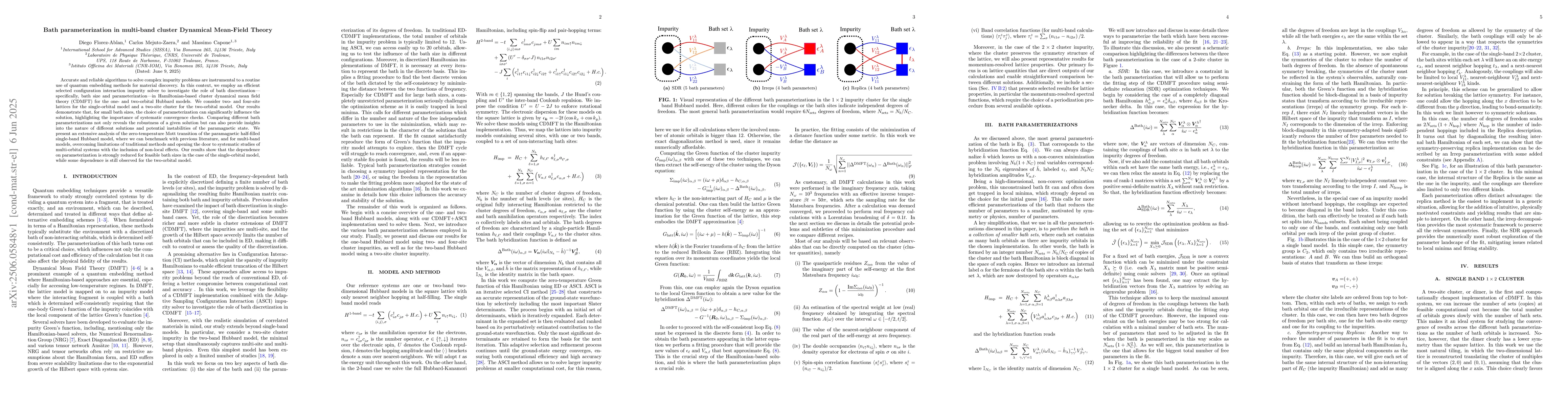 This research employs an efficient impurity solver to study the impact of bath size and parameterization in Hamiltonian-based cluster dynamical mean field theory (CDMFT). Key findings reveal significant influence of parameterization on small bath sizes, emphasizing the need for convergence checks. The study benchmarks the zero-temperature Mott transition in single-orbital models and extends to multi-band systems, demonstrating reduced dependence on parameterization for larger, feasible bath sizes in single-orbital models, while noting some dependence persists in two-orbital models.