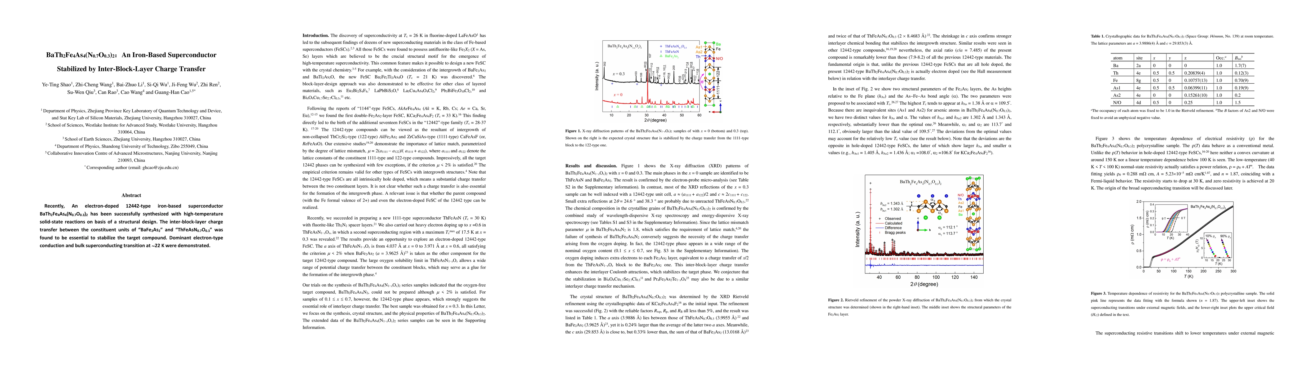 BaTh$_2$Fe$_4$As$_4$(N$_{0.7}$O$_{0.3}$)$_2$ is an iron-based superconductor that achieves high-temperature superconductivity through inter-block-layer charge transfer, with a transition temperature of ~22 K.