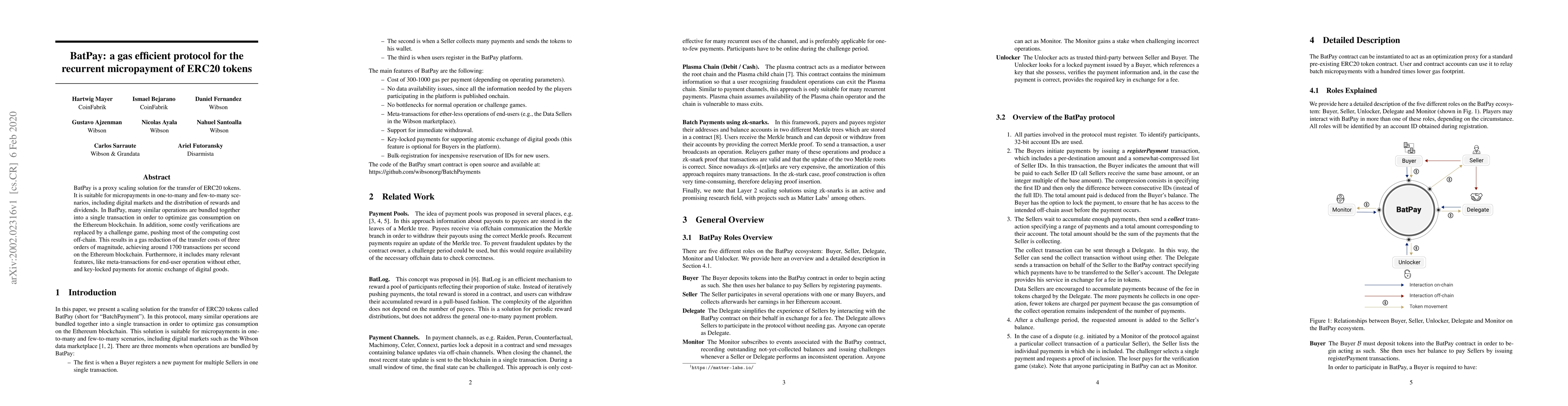 BatPay optimizes gas consumption for ERC20 token transfers through bundled transactions and off-chain challenge games, reducing costs by three orders of magnitude.