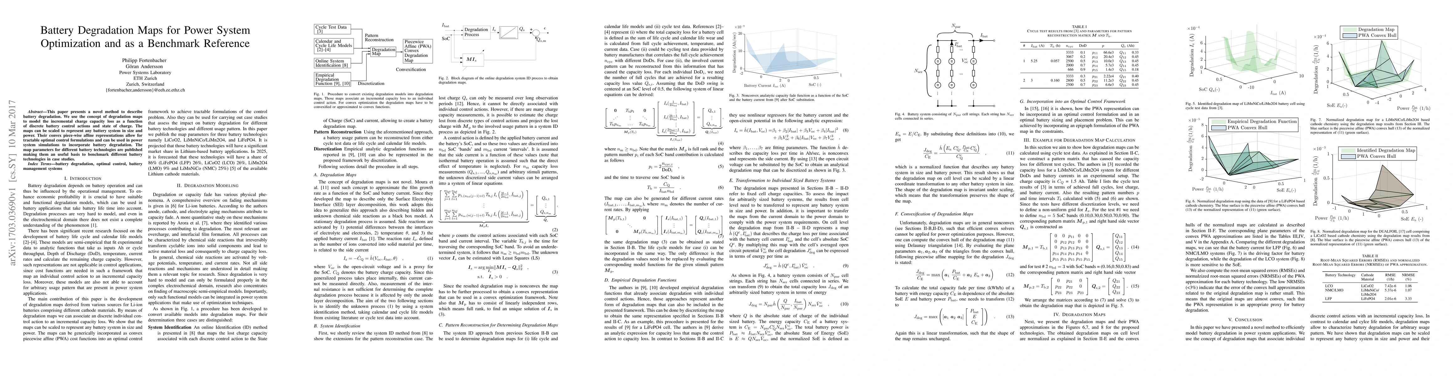 This paper presents a novel method to describe battery degradation. We use the concept of degradation maps to model the incremental charge capacity loss as a function of discrete battery control actions and state of charge. The maps can be scaled to represent any battery system in size and power. Their convex piece-wise affine representations allow for tractable optimal control formulations and can be used in power system simulations to incorporate battery degradation. The map parameters for different battery technologies are published making them an useful basis to benchmark different battery technologies in case studies.