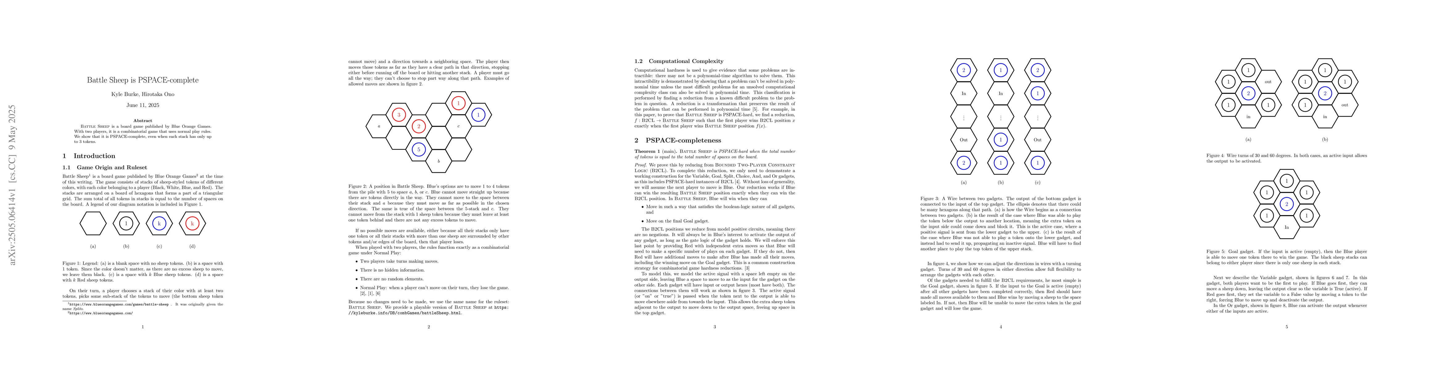 The research demonstrates PSPACE-completeness of Battle Sheep, a two-player board game, by proving it remains PSPACE-hard even with stacks of up to 3 tokens.