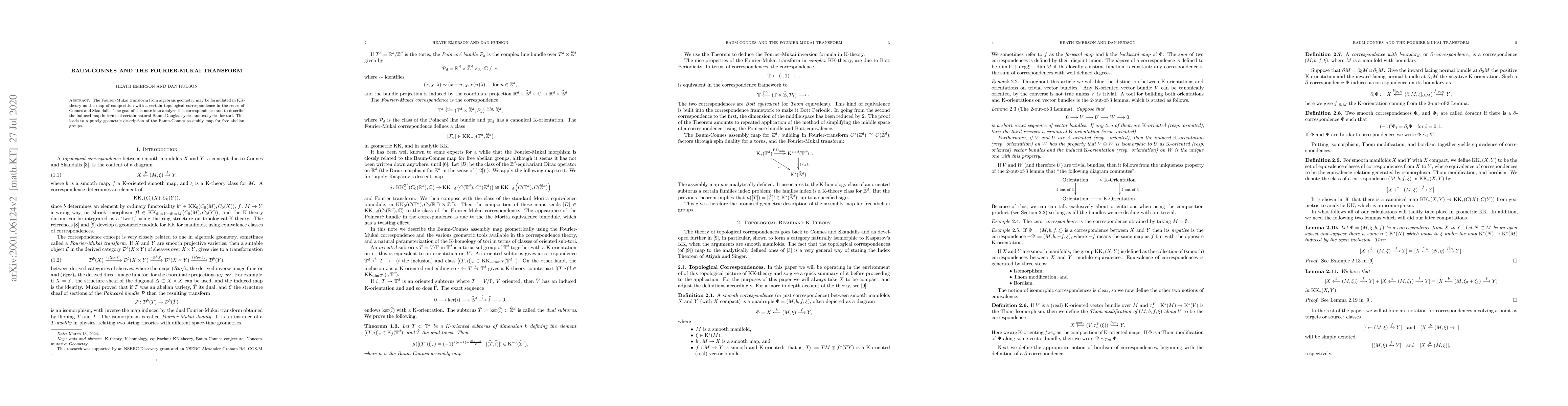 This paper explores the K-theoretic analogue of the Fourier-Mukai transform through the Baum-Connes map, demonstrating its action on the K-theory of tori via Baum-Douglas cocycles, and deriving the Fourier-Mukai inversion formula, ultimately providing a geometric description of the Baum-Connes assembly map for free abelian groups.