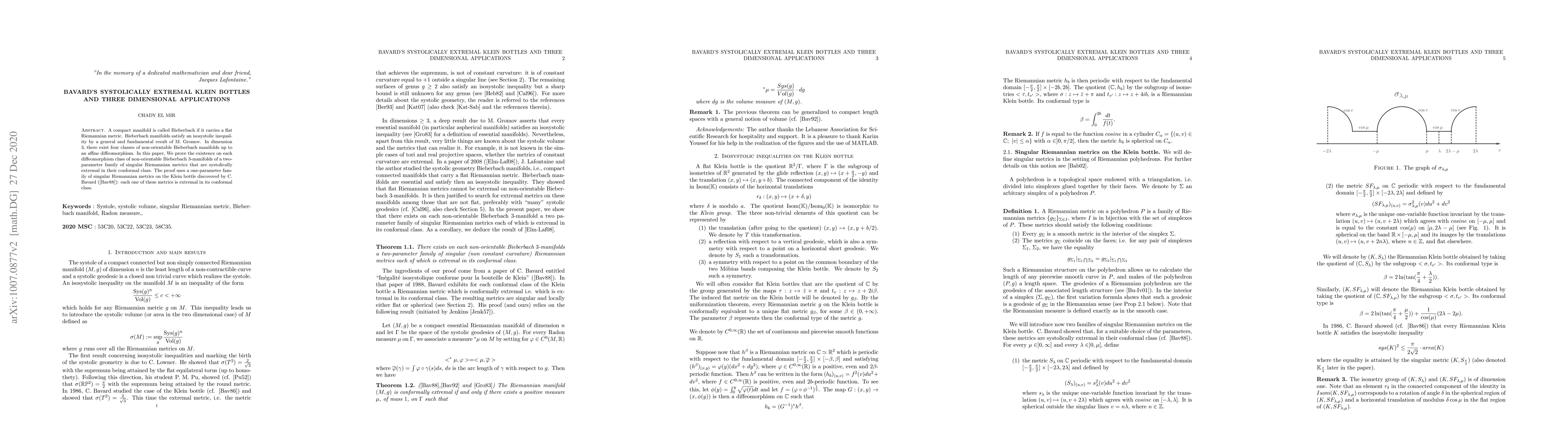 This paper proves the existence of a two-parameter family of systolically extremal singular Riemannian metrics on each class of non-orientable Bieberbach 3-manifolds. The proof leverages a one-parameter family of extremal metrics on the Klein bottle discovered by C. Bavard.