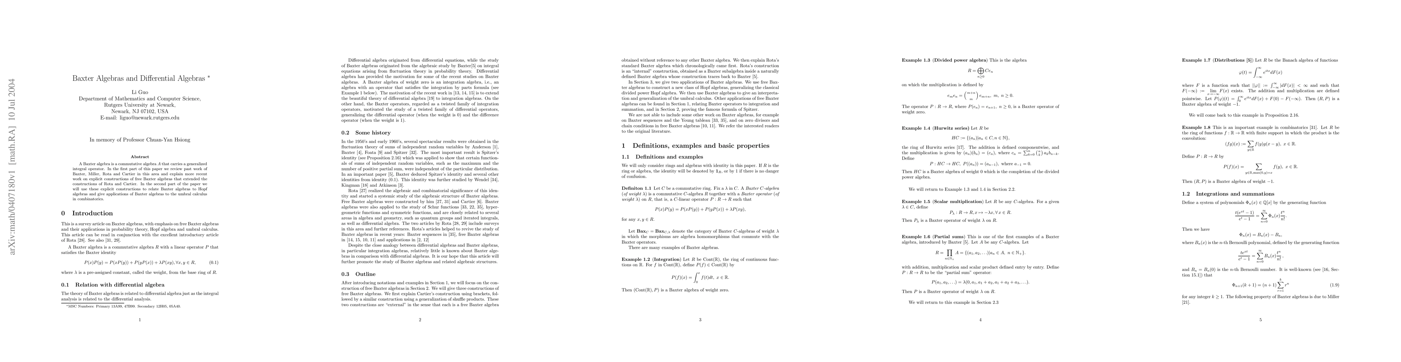 This paper explores Baxter algebras, a type of commutative algebra that relates to combinatorics, and establishes connections between them and Hopf algebras with applications in the umbral calculus.