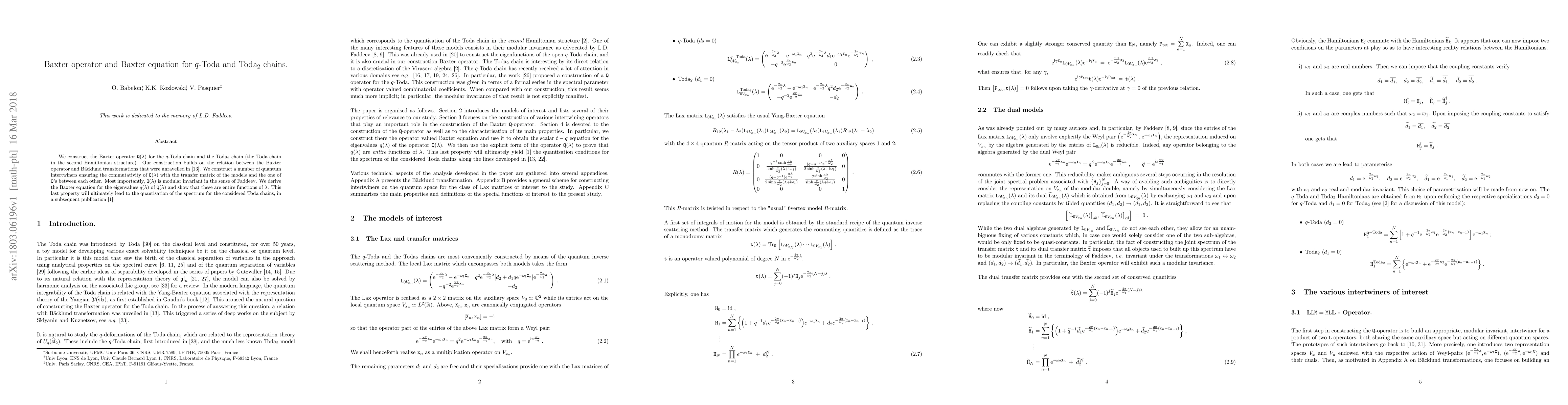 This paper constructs the Baxter operator $\boldsymbol{ \texttt{Q} }(\lambda)$ for $q$-Toda and Toda$_2$ chains, leveraging connections to Bäcklund transformations. It establishes quantum intertwiners for $\boldsymbol{ \texttt{Q} }(\lambda)$ and derives the Baxter equation, proving the eigenvalues are entire functions, paving the way for spectrum quantization.