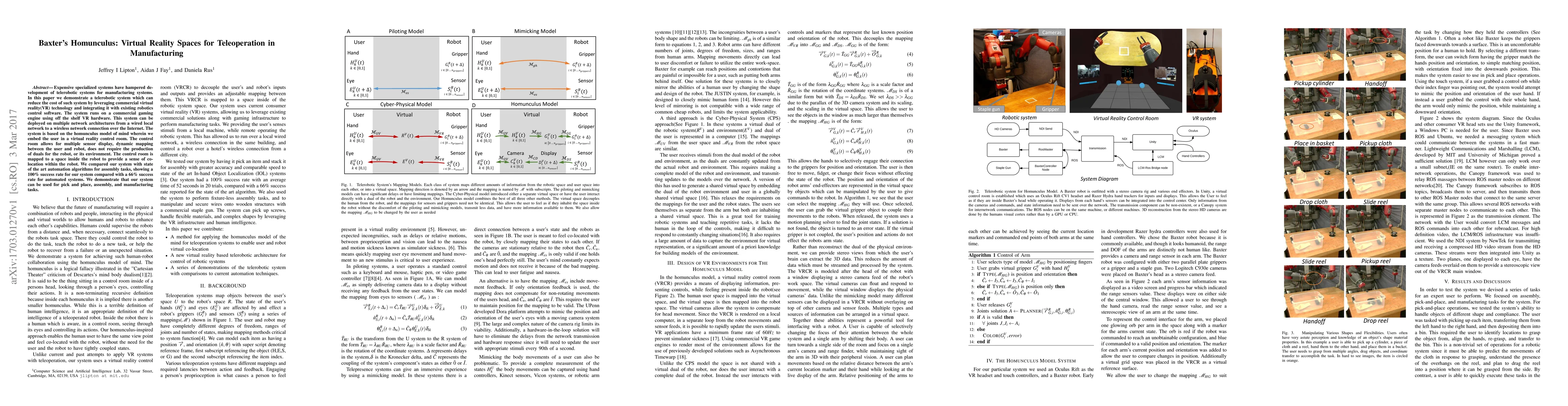 This paper presents a cost-effective telerobotic system for manufacturing using commercial VR technology integrated with robotics control software, achieving a 100% success rate in assembly tasks compared to automated systems. The system leverages a virtual reality control room for user interaction and dynamic mapping.