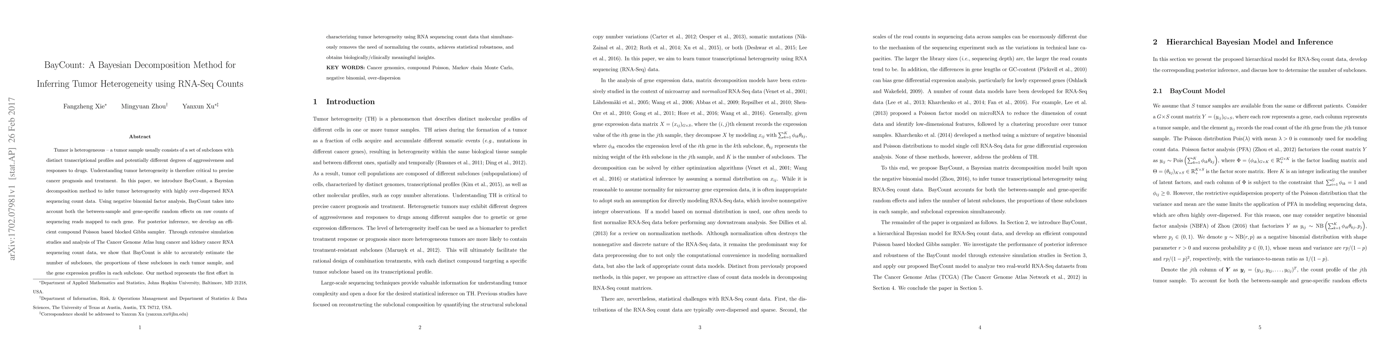 This paper introduces BayCount, a Bayesian method that infers tumor heterogeneity from RNA sequencing count data, allowing for accurate estimation of subclones and gene expression profiles without normalizing counts.