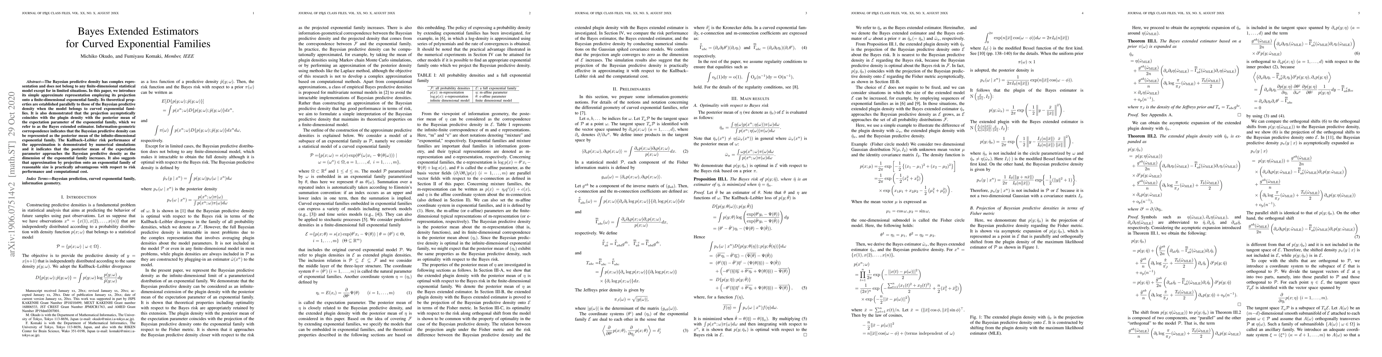 This paper introduces an approximate representation of the Bayesian predictive density by projecting it onto a finite-dimensional exponential family, establishing its theoretical properties and demonstrating its asymptotic equivalence to the Bayes extended estimator. The approach is shown to be practically advantageous in terms of risk performance and computational efficiency.